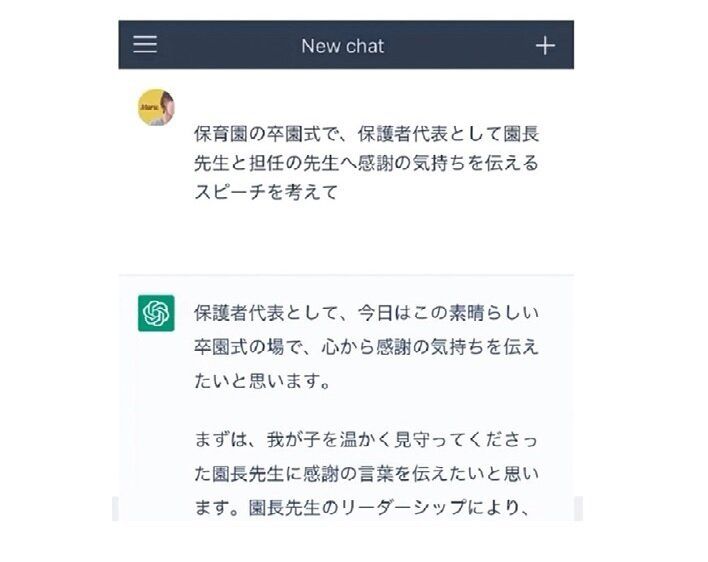 文章作成もChat GPTの得意分野。考えるのに時間がかかるPTAなどの案内文、メール、あいさつ文なども一瞬で作成。人が書いた文章の校正もしてくれる。