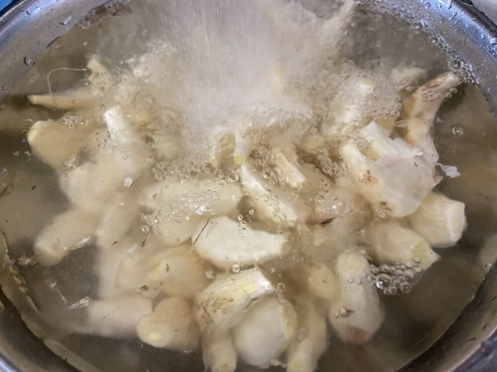 流水でよくもみ洗いします。洗っているうちに薄皮がぽろぽろとはがれ落ちてきます。