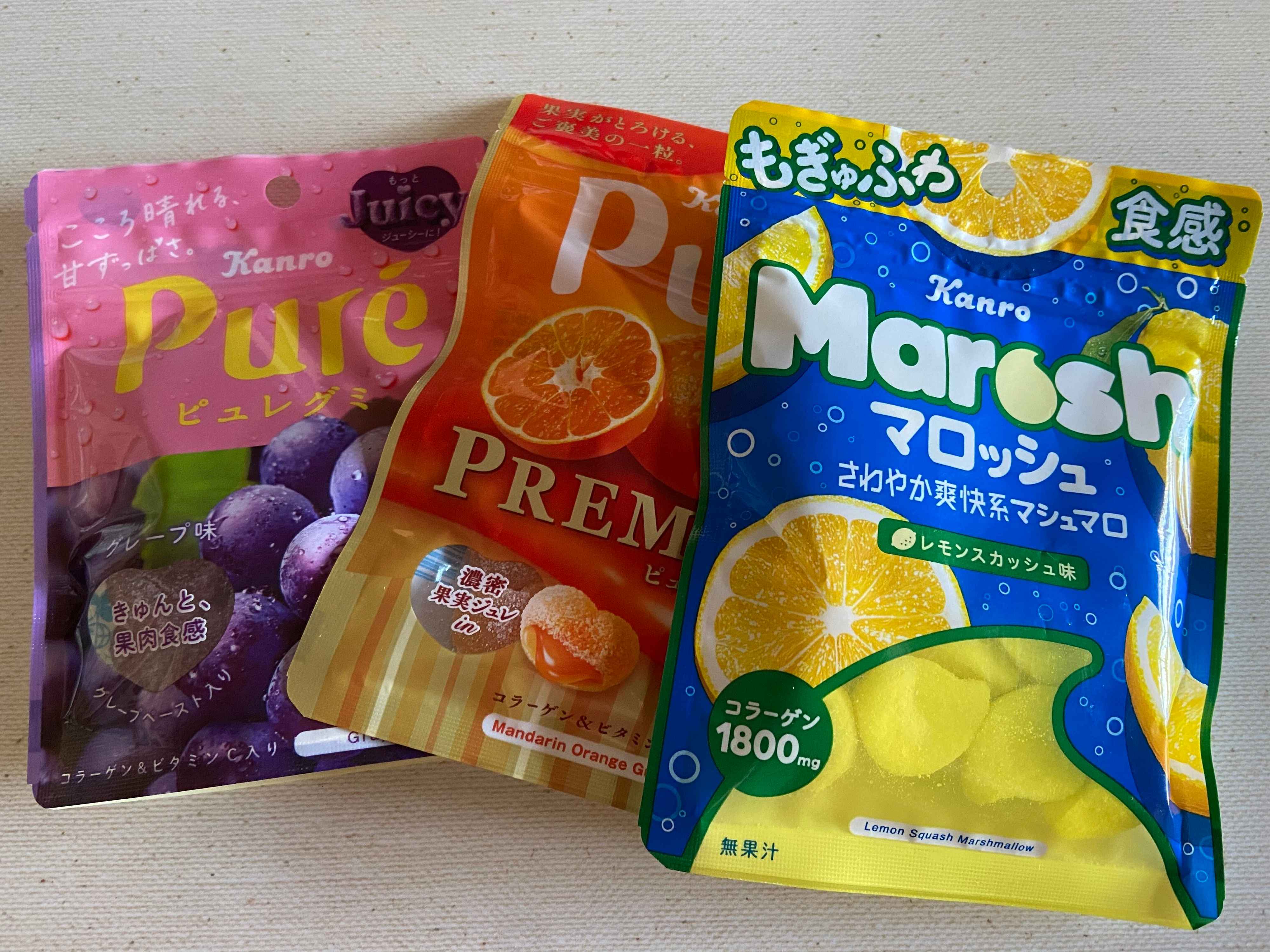 筆者が昔から大好きでよく食べているのがピュレグミ。甘酸っぱくシャリっともちっとした食感もお気に入り。新登場のピュレグミプレミアム「温州蜜柑味」は、濃縮みかん果汁が入ってとろけるおいしさです。