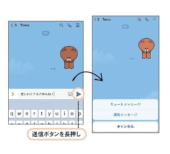 ミュート送信にすれば夜でも迷惑かけずに送信