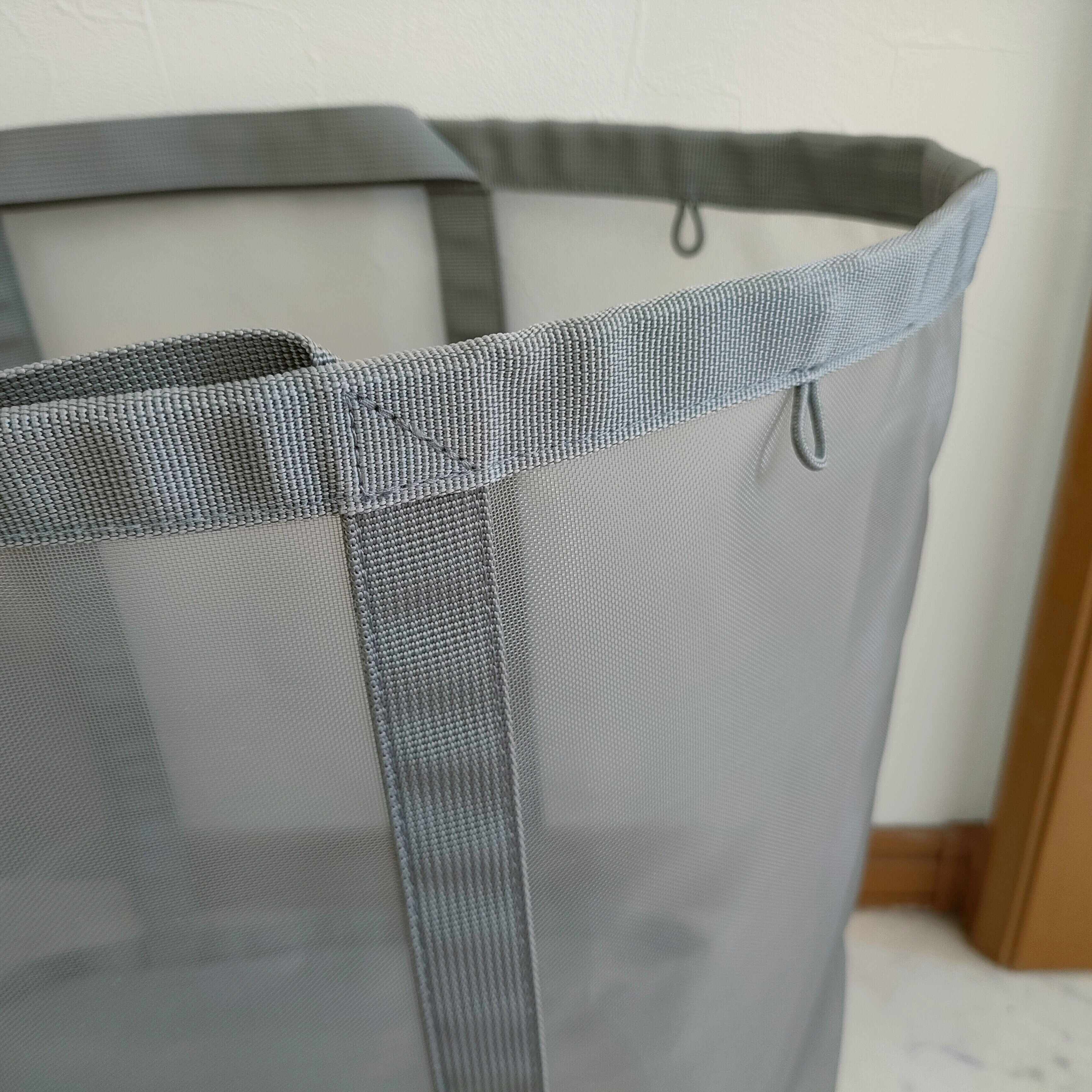 表面は目の細かいメッシュ素材。通気性がよく、濡れた洗濯物を入れても乾きやすく衛生的にも安心です。生地は薄めですがハリがありしっかりと自立してくれます。