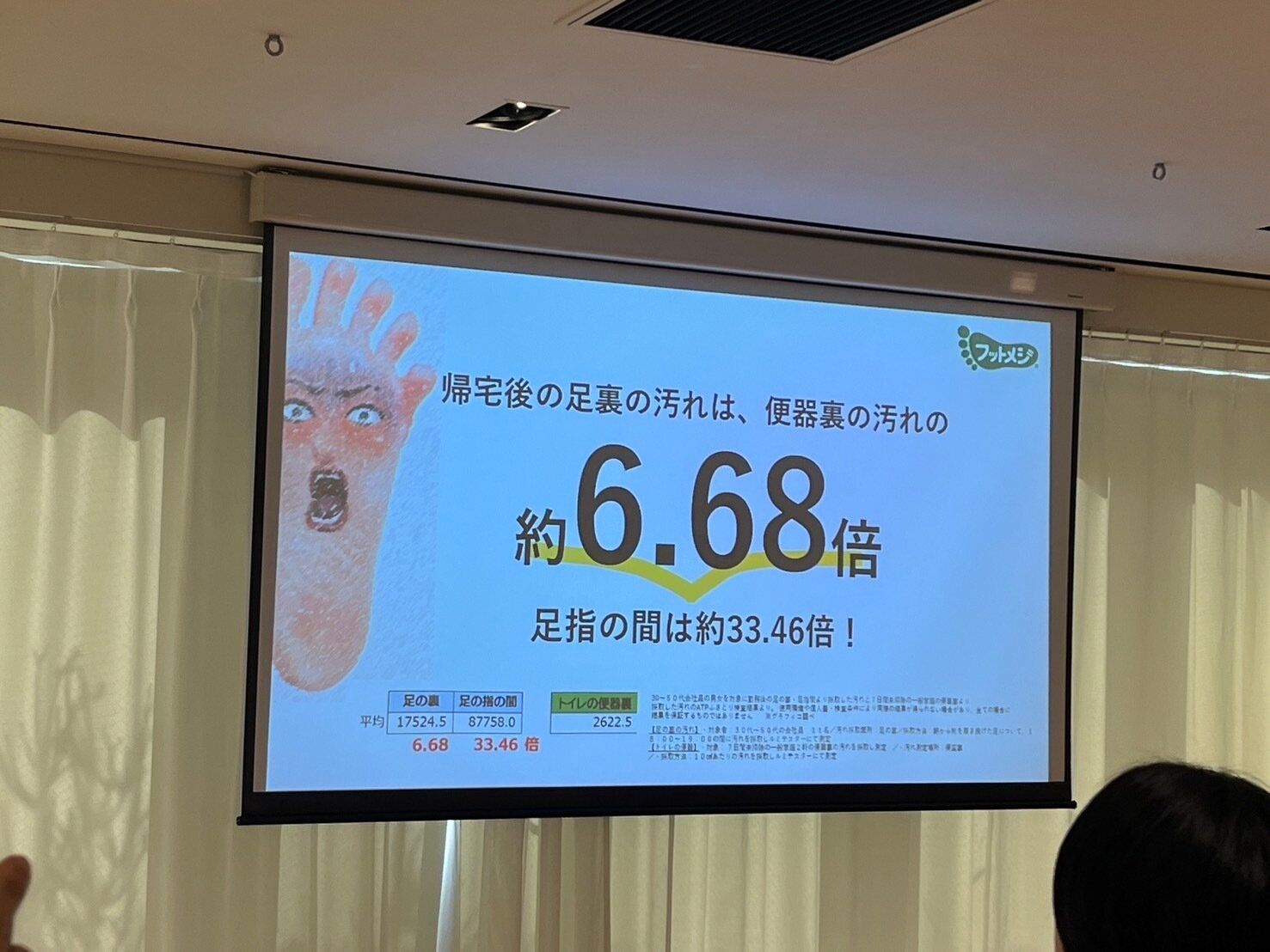 なんと、帰宅後の足裏の汚れは便器裏の汚れの約6.68倍!さらに、足指の間は約33.46倍にものぼるのだそうです。