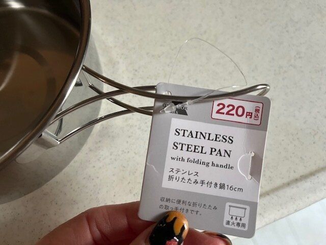 こちらです!ステンレス折りたたみ手付き鍋 16㎝が驚きの220円(税込み)!