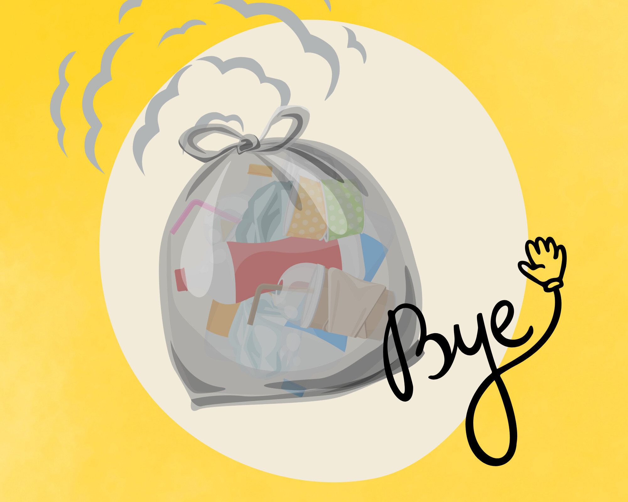 油を吸ったキッチンペーパーや、お菓子の包みなど、食品のカスがついたごみ。以前はそのままキッチンのごみ箱に捨てていましたが、気温が上がってくると、ごみ箱のフタを開けたときのニオイが気になるように。