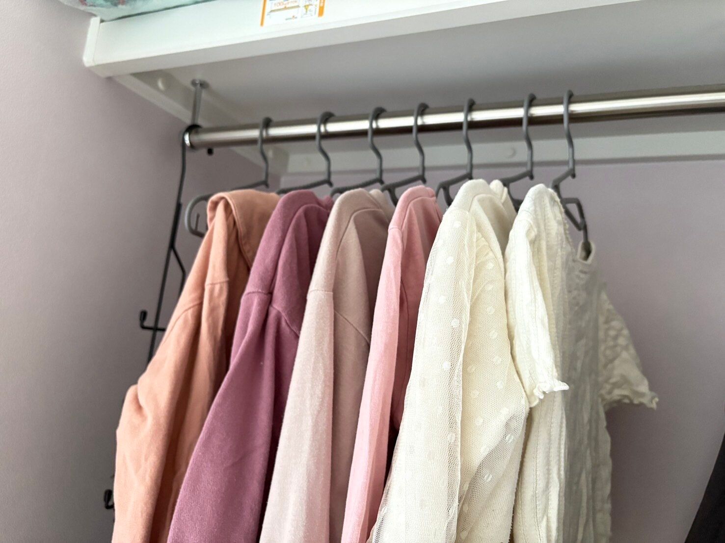 ハンガーを掛ける場所が増えたおかげで、全体的にゆとりを持って衣類を収納できるようになりました。ぱっと見るだけでどこに何があるかわかりやすいので、子どもたちの朝の支度も早くなったような気がします。掛ける収納なら、洗濯物が乾いた後ハンガーのままクローゼットに戻すだけなので家事もラクになりますよ。