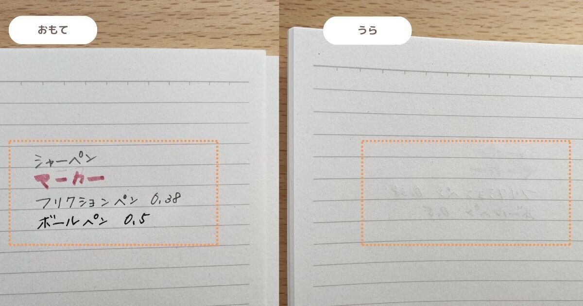 試しにマーカーやボールペンなどでも裏移りをチェックしてみましたが、うっすら透けて見えるものの、気になるほどではありませんでした。