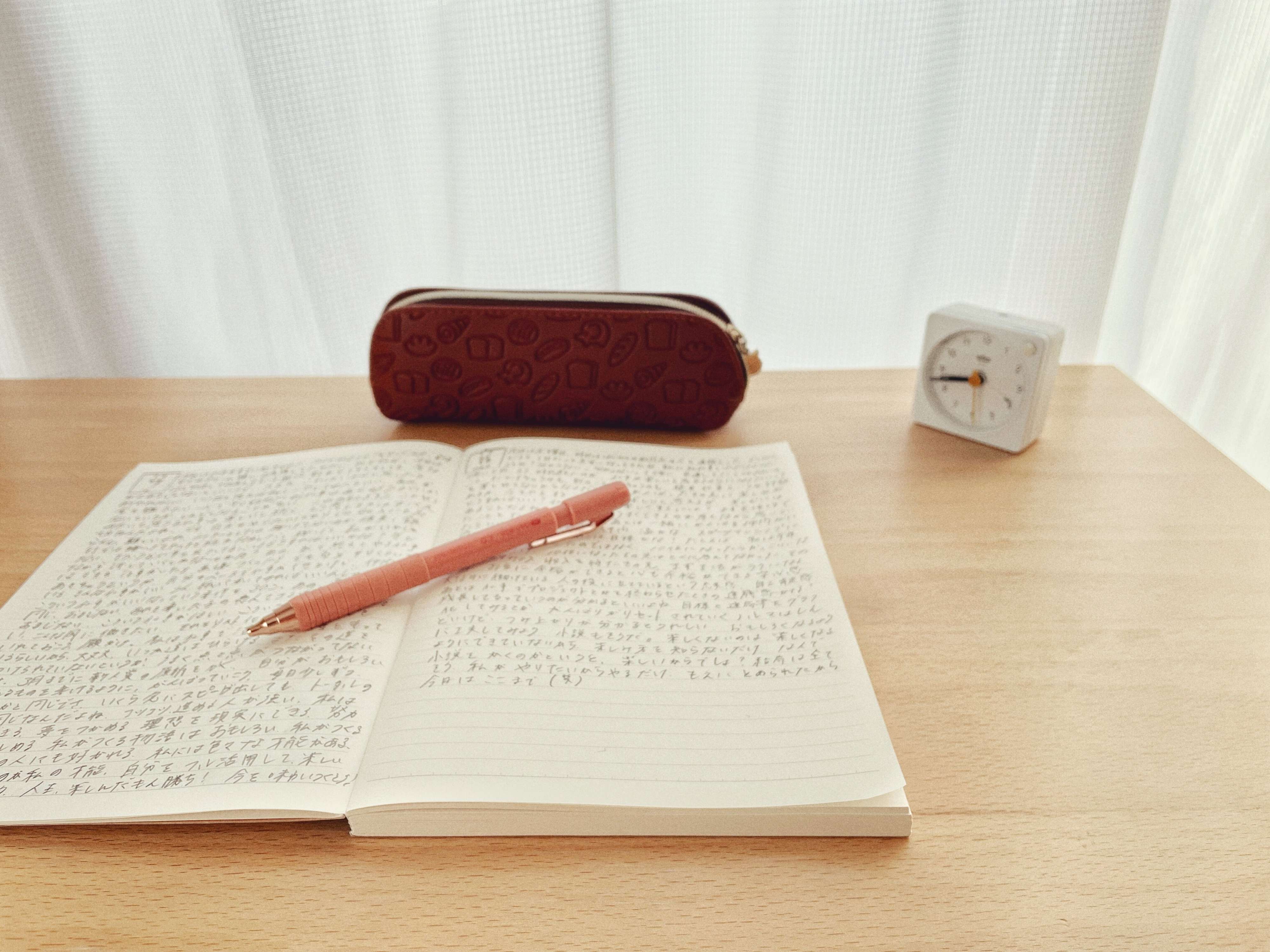 本ではA4ノート3ページ分を書くことが推奨されているんですが、朝は何かと忙しく…。続けやすさを優先し、1日1ページを目安にモーニングページを書いています。