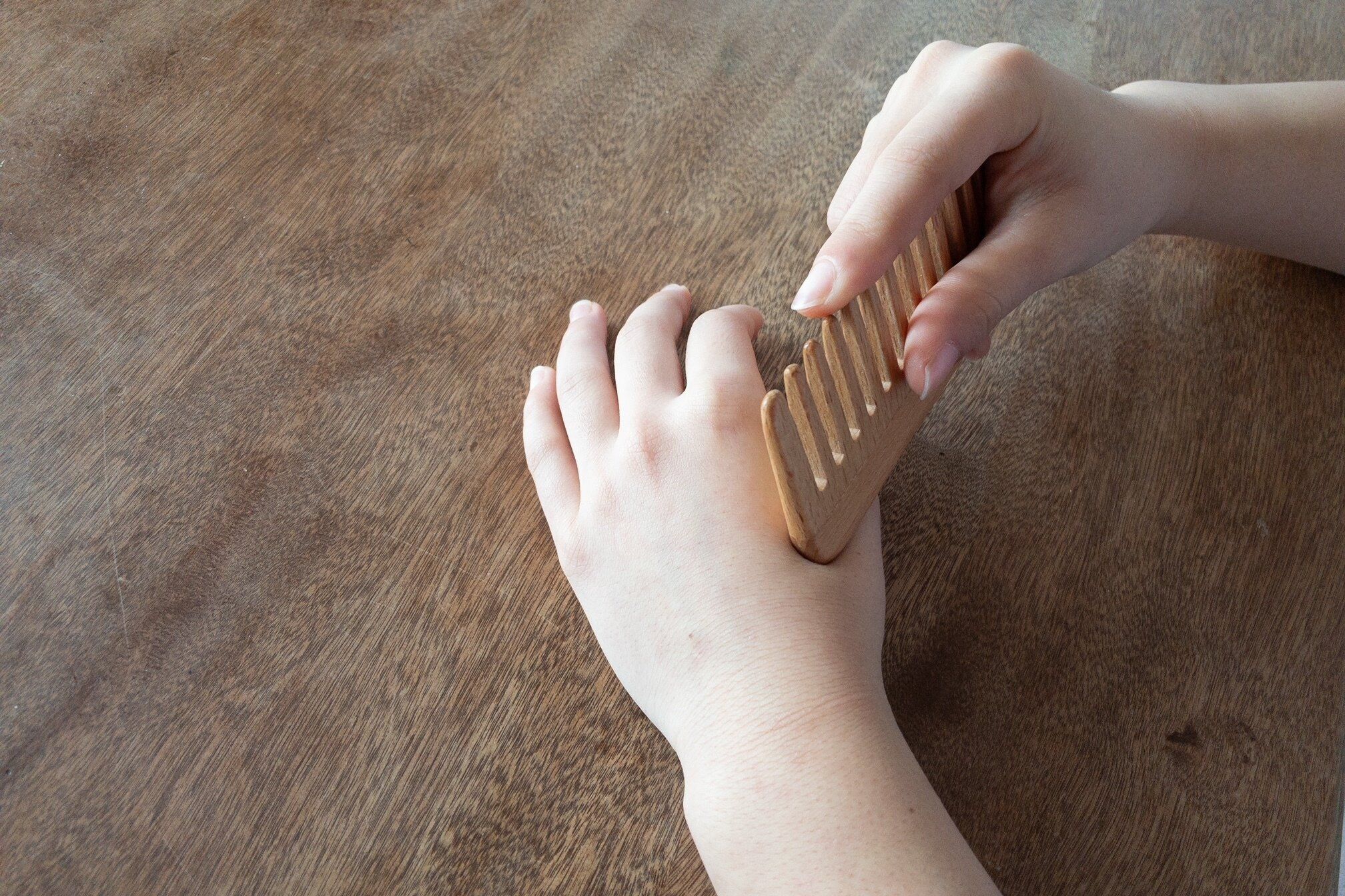 頭皮マッサージにもちょうどよく、使い始めはもちろんブナ材の硬さが頭皮のツボにいい刺激を与えてくれるのですが、筆者のコームは使い始めて4年目で先端が丸くなり頭皮へのあたり心地がより気持ちよくなった気がします。(個人の感想です。)