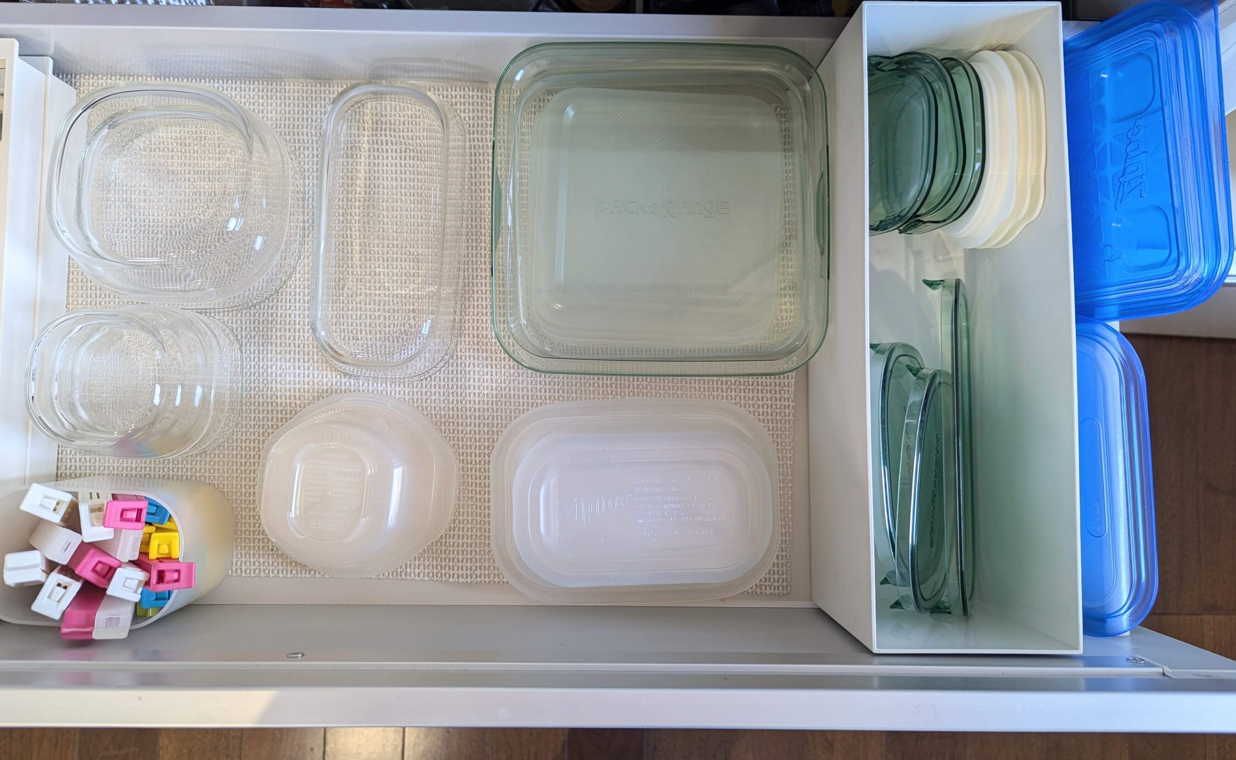 パック&レンジは4種類、合計9個を愛用中。容器とフタを分けて収納すると使いやすい