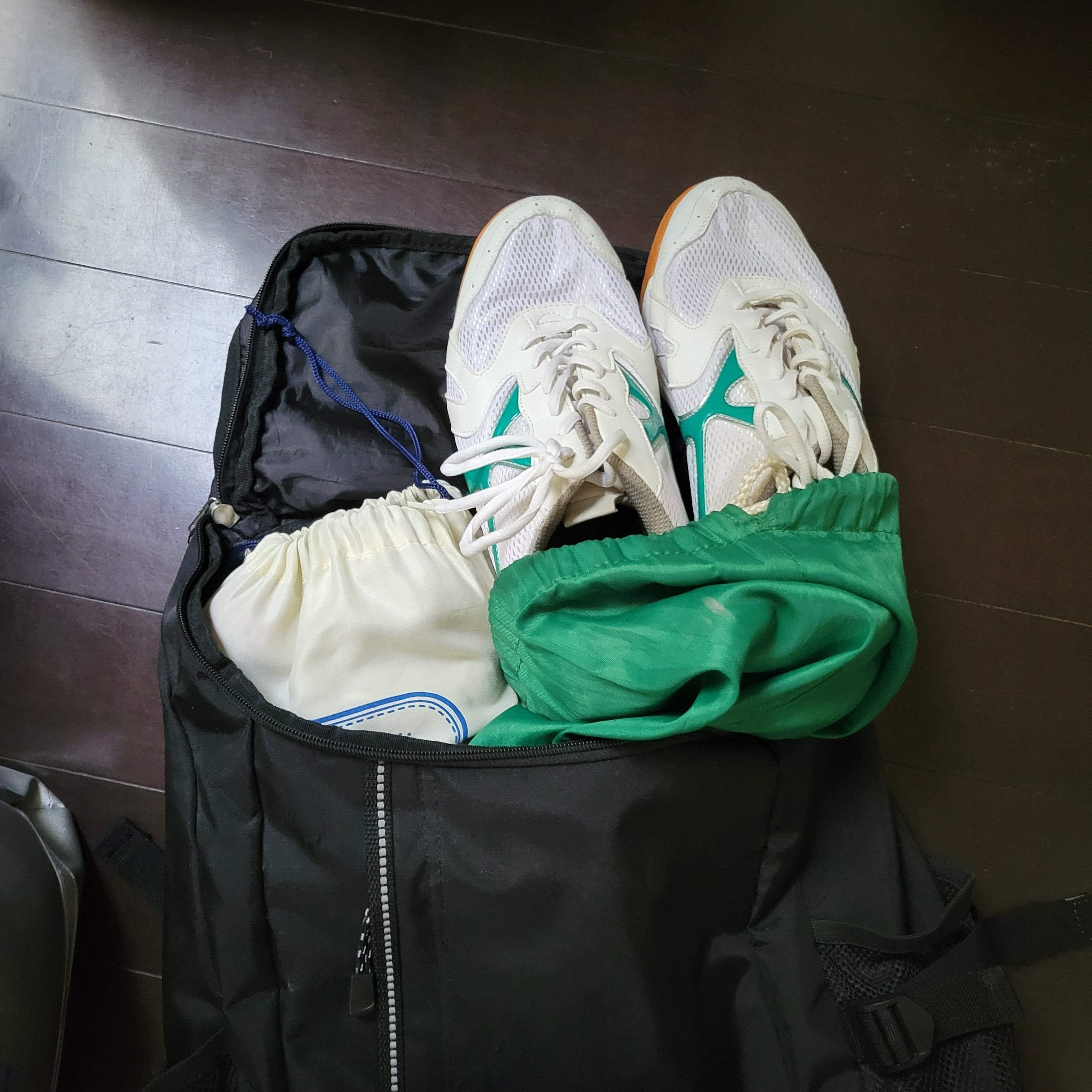 簡単にモノを捨てられない性格なので、卒業して使わないリュックや体育館シューズ、ジャージは災害用に回しています。