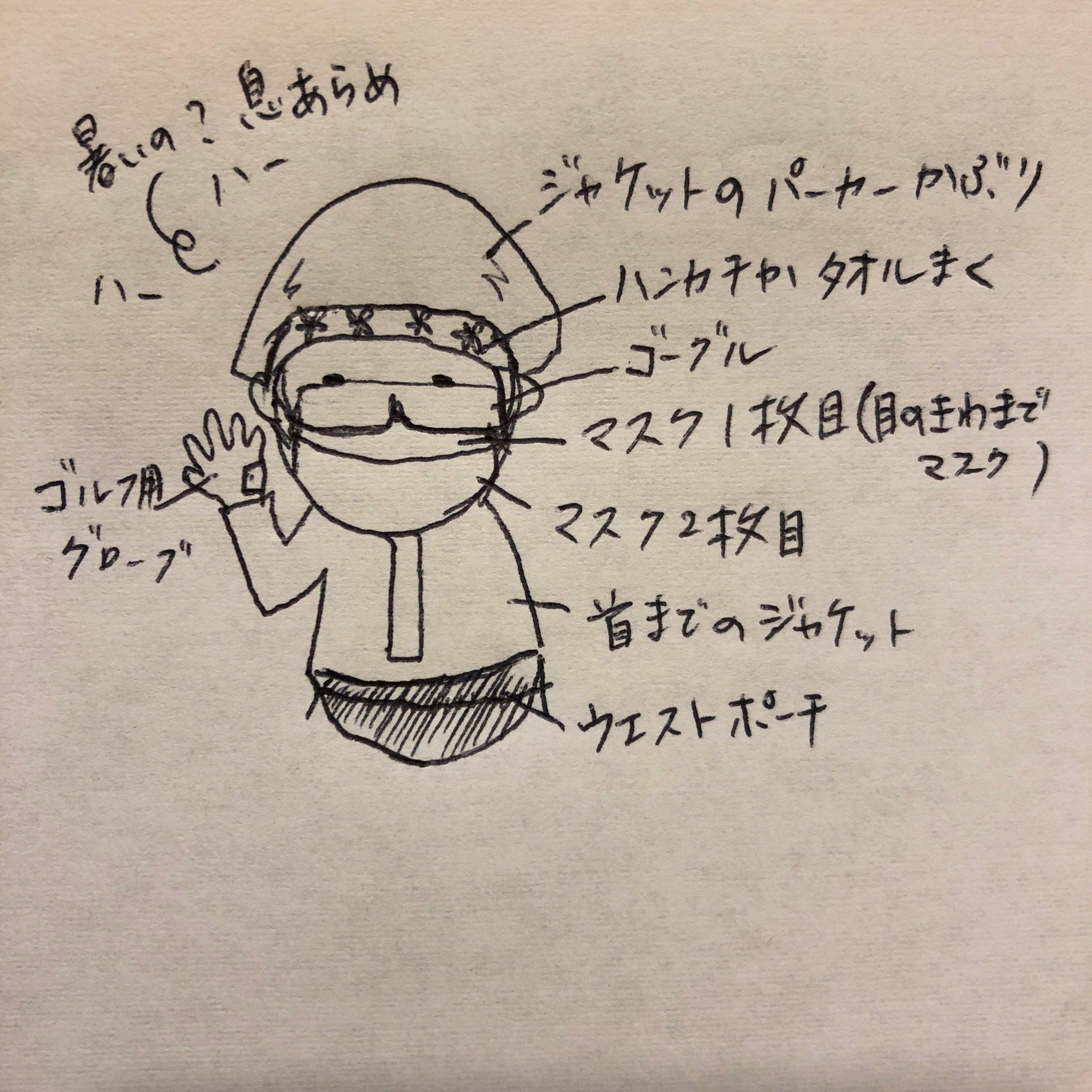 こちらは、妹が先月電車でお見かけした最大限にウイルス対策をされているであろう方の話を聞いて絵にしたものです。ここまで防備して逆に暑さにハアハアされている方もいらっしゃれば、未だにマスクもせずに外で過ごされる方もいらっしゃる。どちらも凄いなあと思っていましたが、ここまでではないにせよ似たような格好をされた方が増えてくる可能性があるかもと思い始めたのがつい最近のことです。