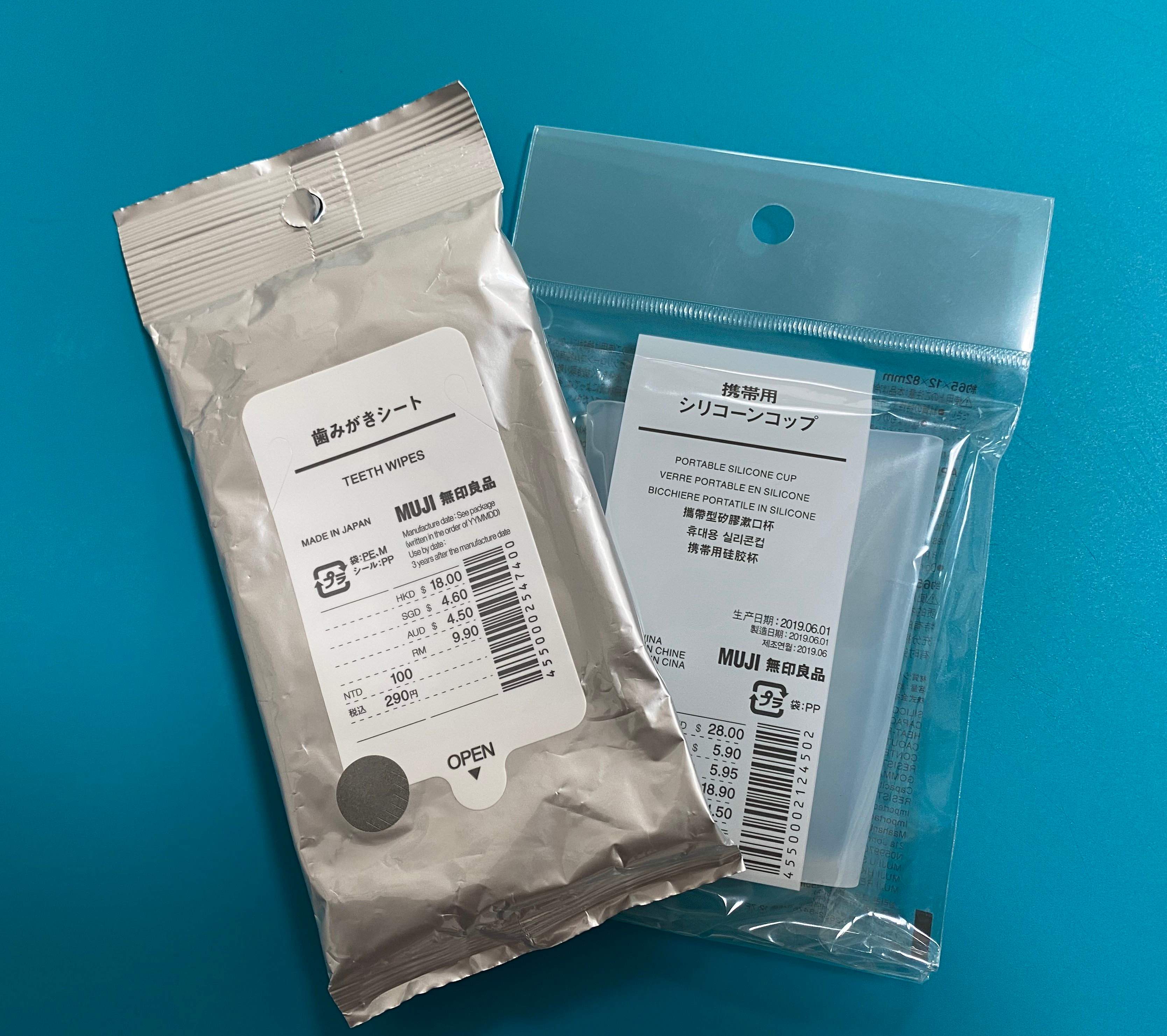 コップと歯磨きシートは無印良品で購入しました。