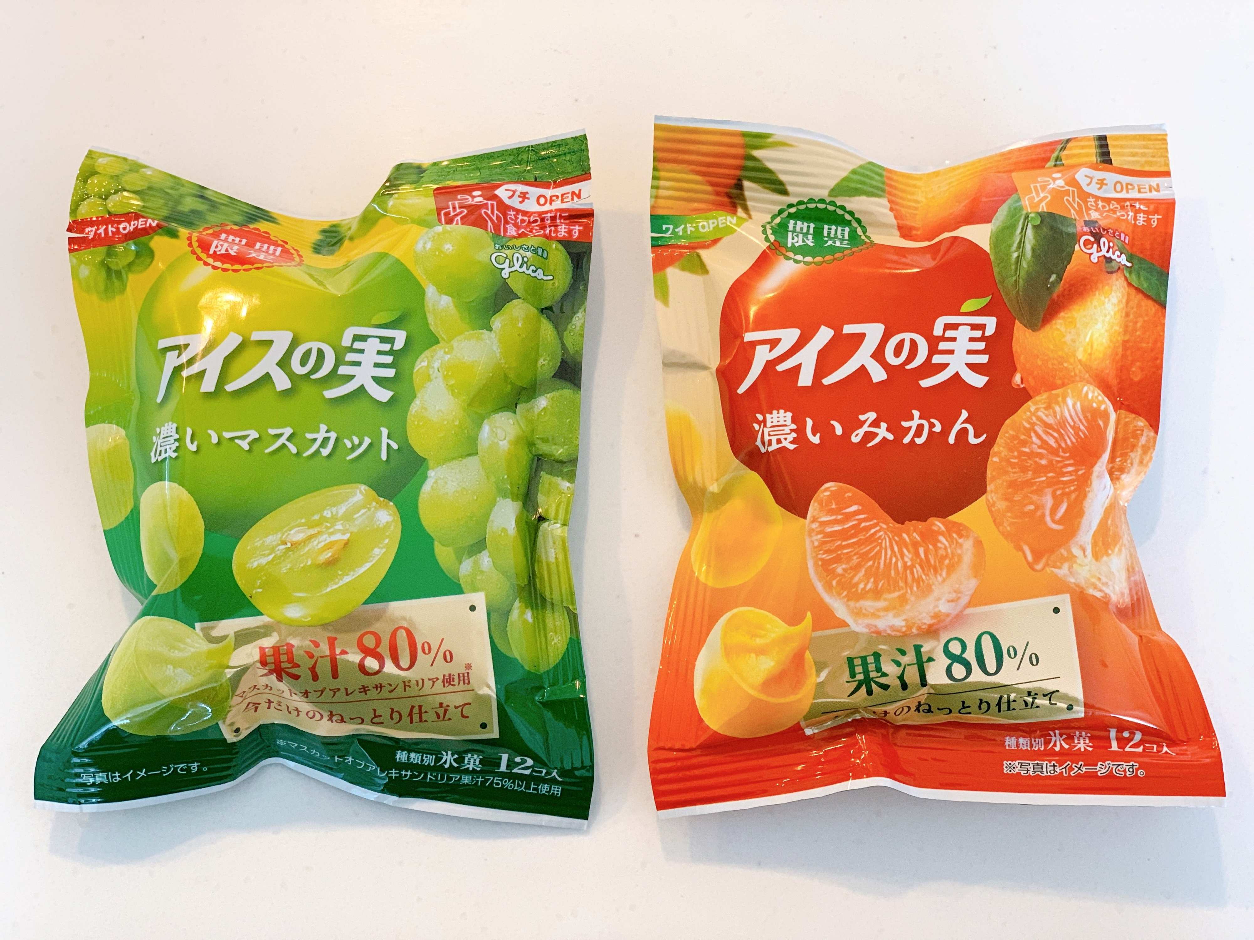 今回は、2019年12月に発売された期間限定のアイスの実「濃いマスカット」と「濃いみかん」をご紹介します。