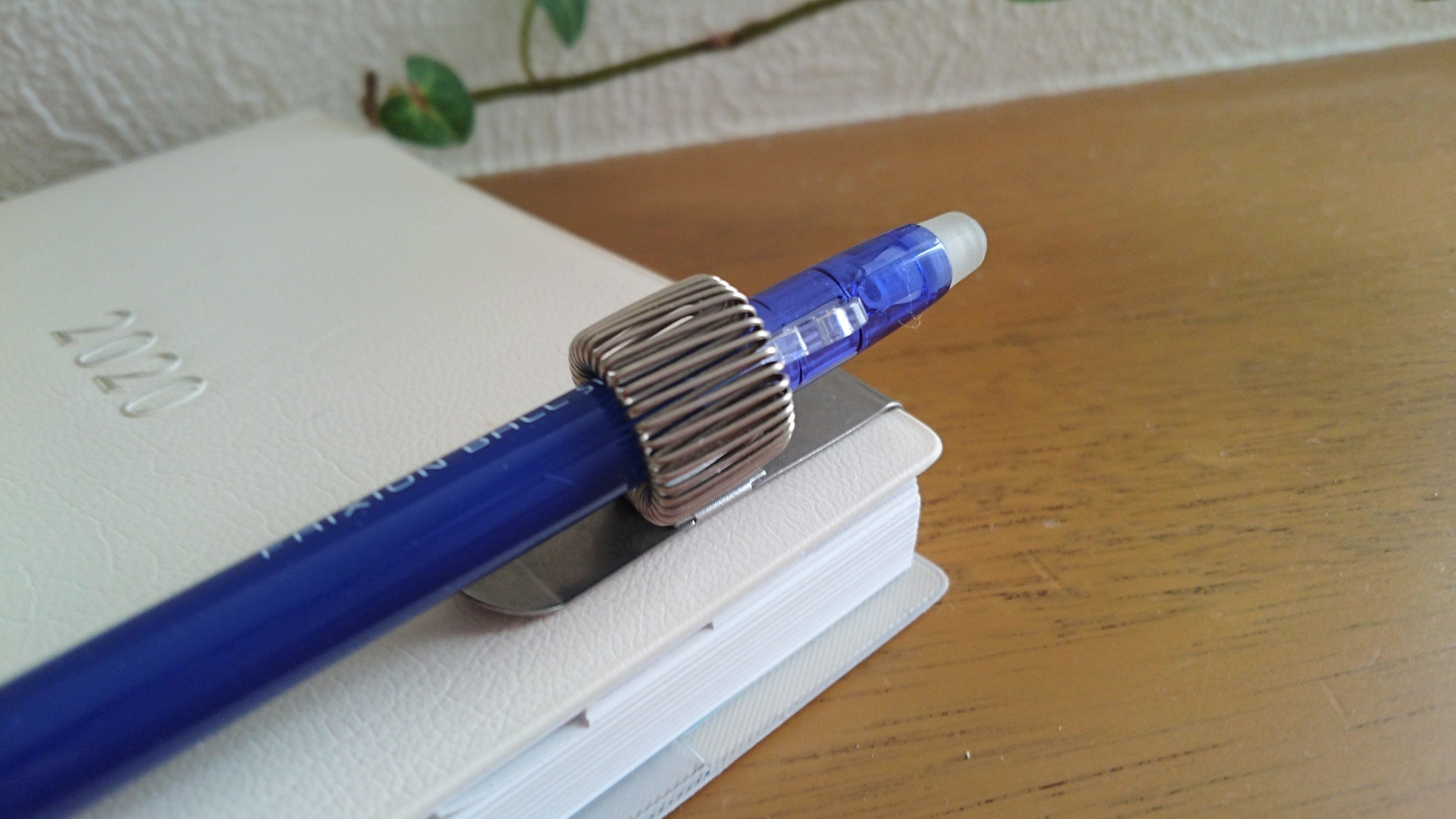 クリップがないペンを手帳に挿すことができる便利グッズで、手帳を持ち歩く時にいつも使っています。