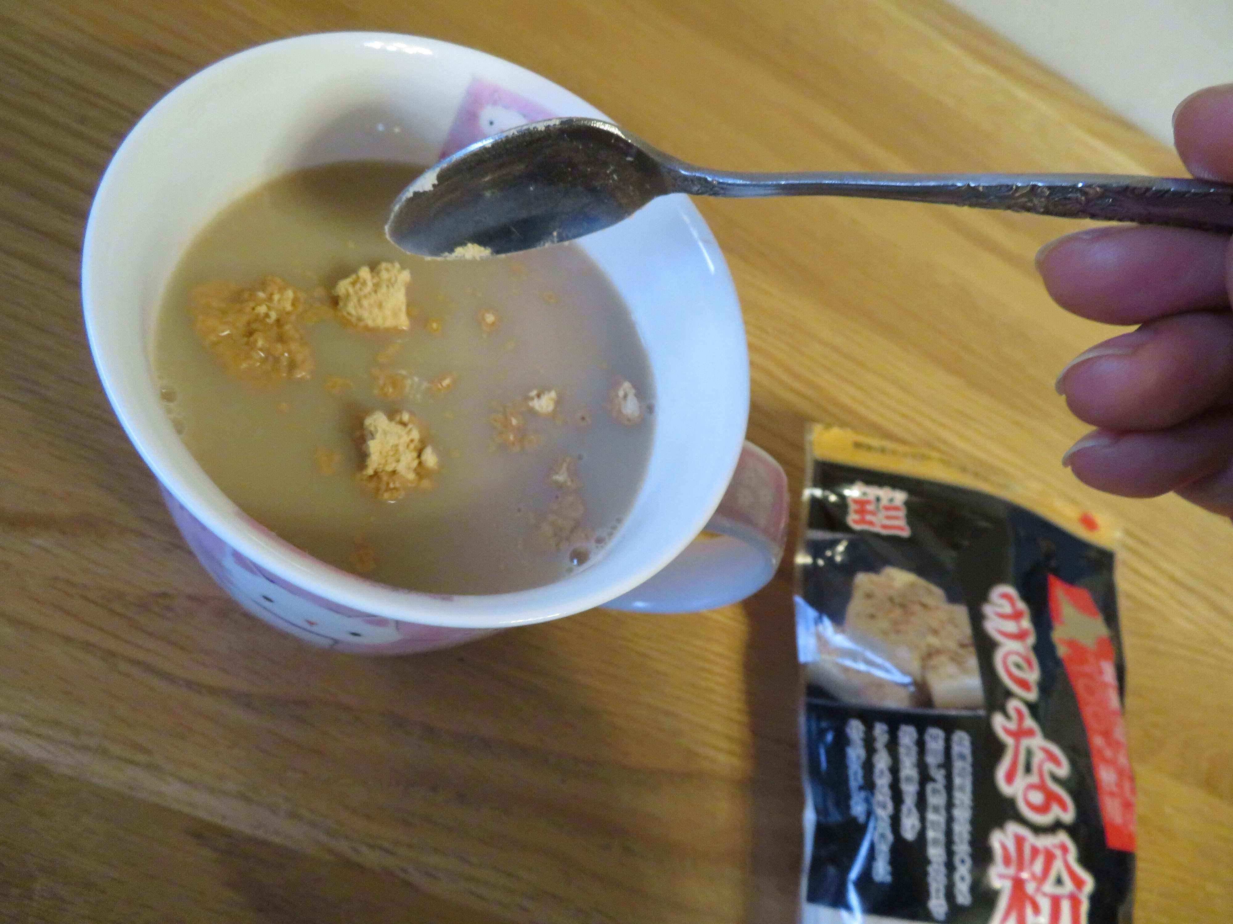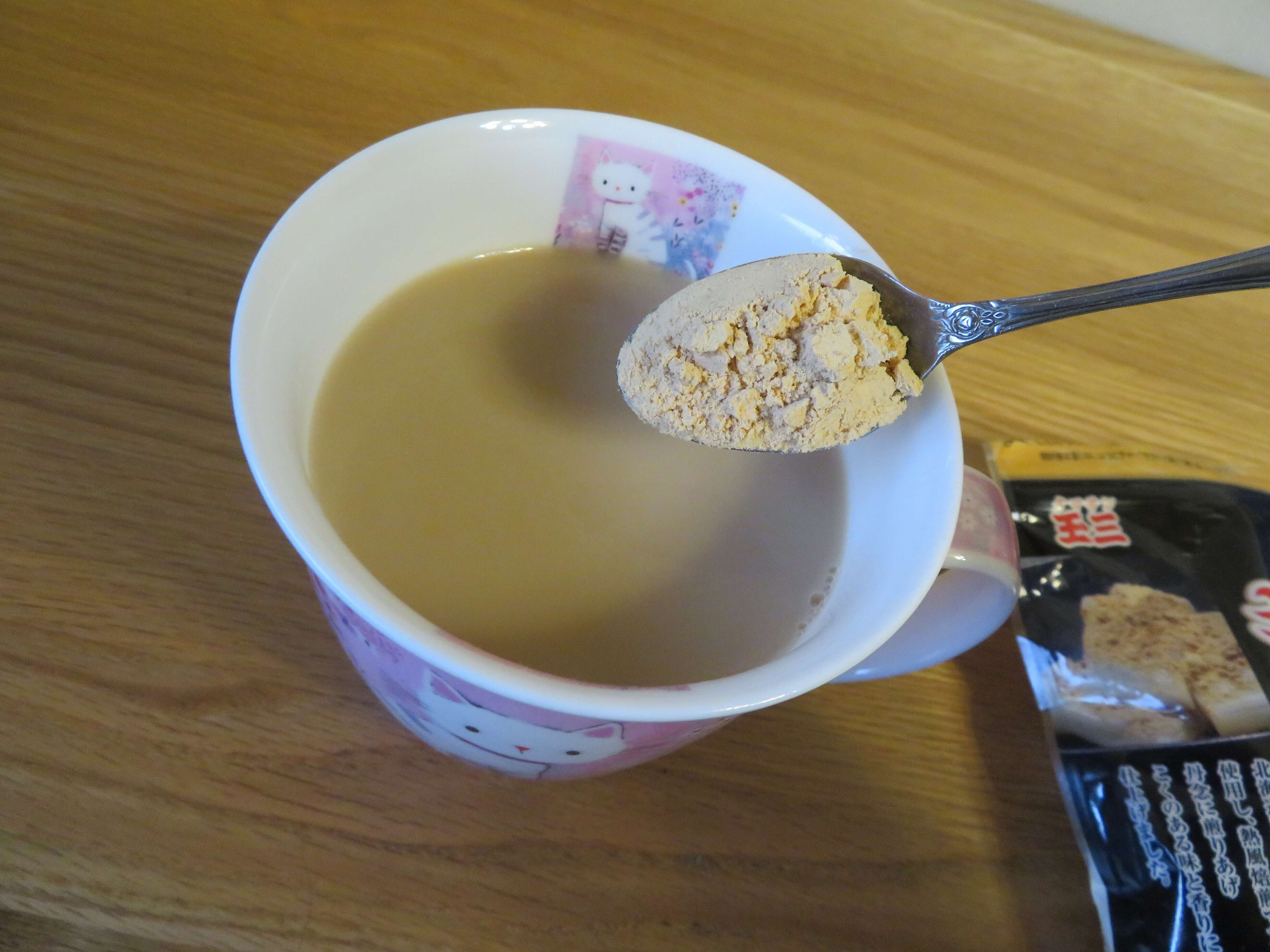 きな粉は水分が少ないのでお菓子などにかけて食べるとパサパサすることがありますが、飲み物に入れるとそういったことがなく安心。