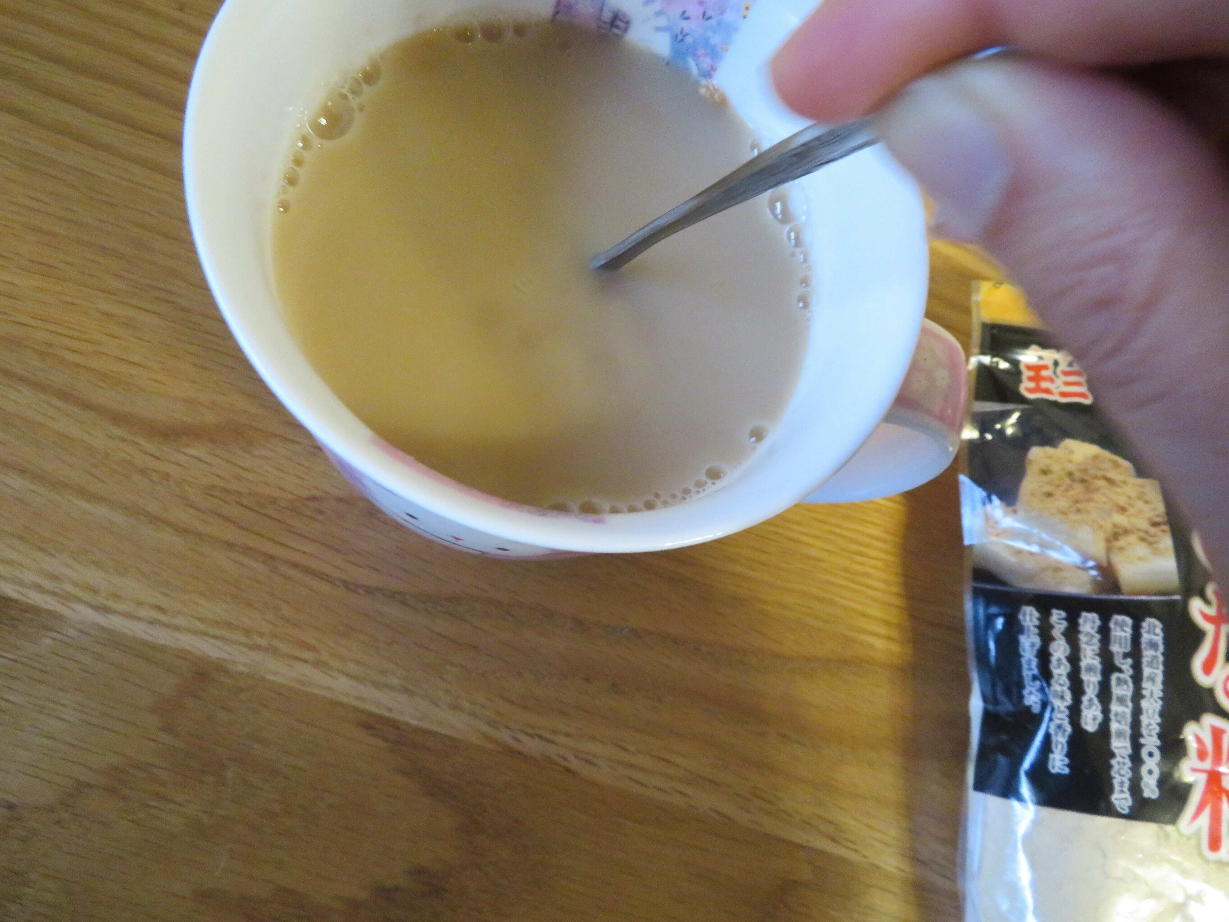 最近の私はめったに牛乳を飲まないので、ソイミルクティーを用意しました。