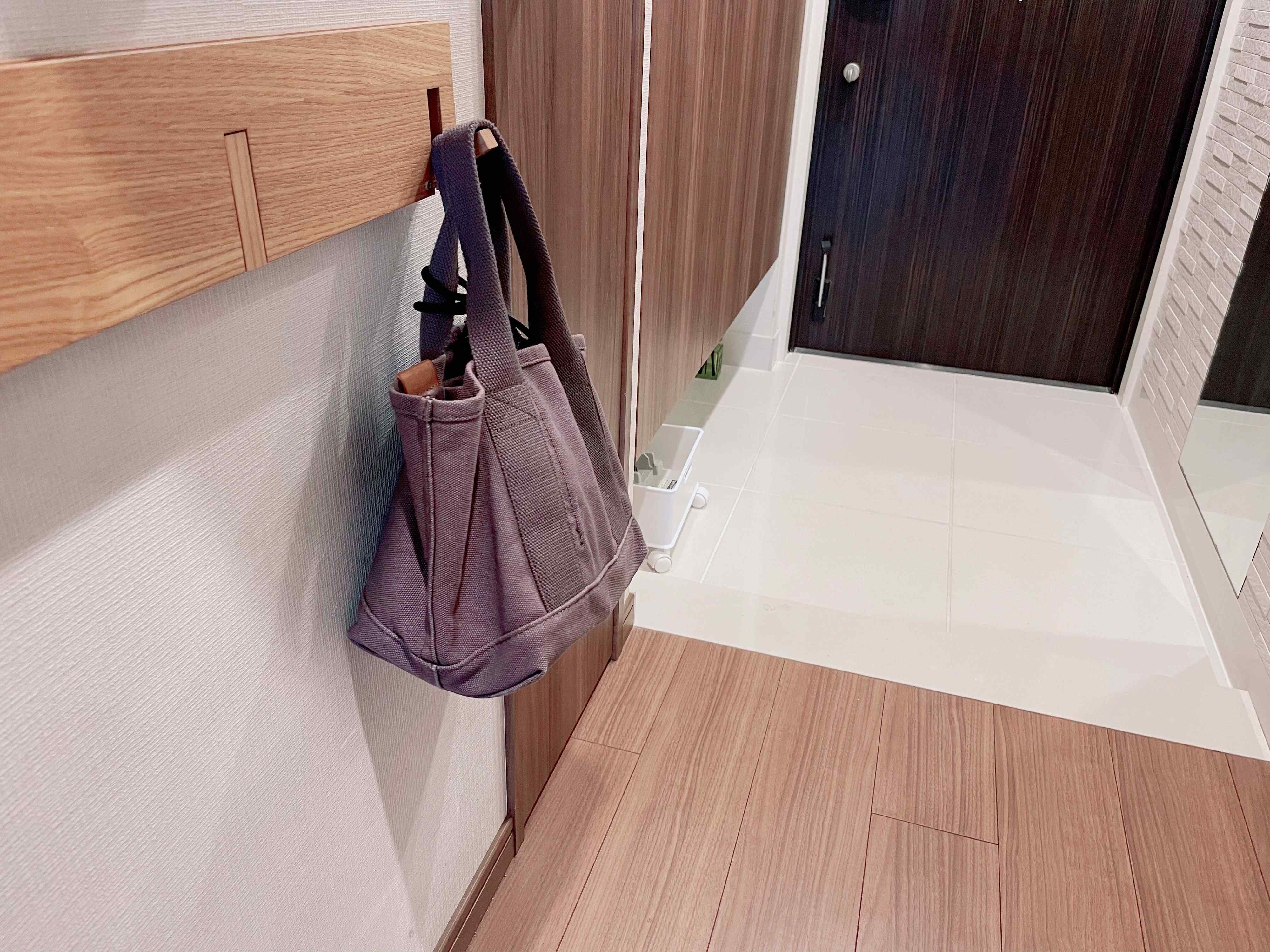 忘れ物防止になりますし、部屋に持ち込まないのでリビングの散らかり防止にもなっています。