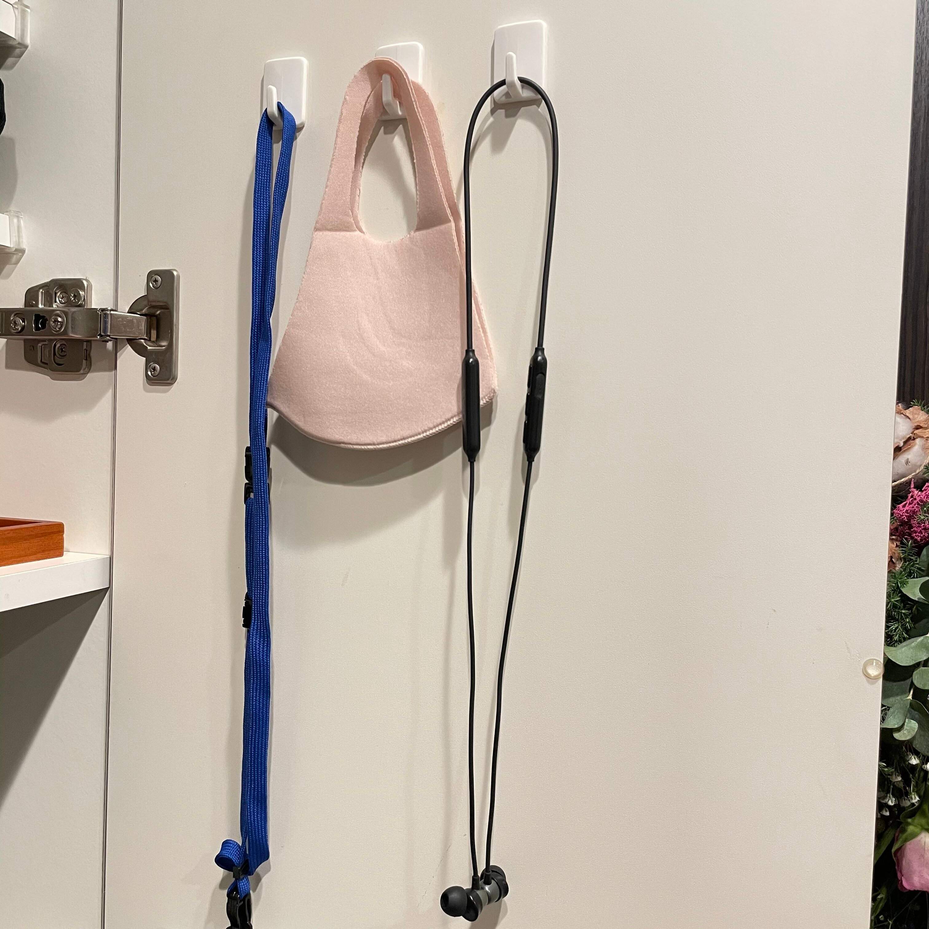 100均のフックを取り付ければ、マスクやイヤホンの一時置きとして便利です。