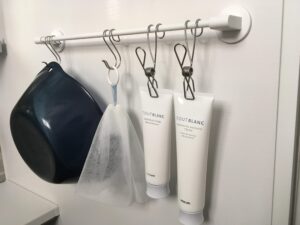 置くと何となく不衛生だったり、ごちゃっとしがちな物でも掛ける事によってすっきりした印象になります。