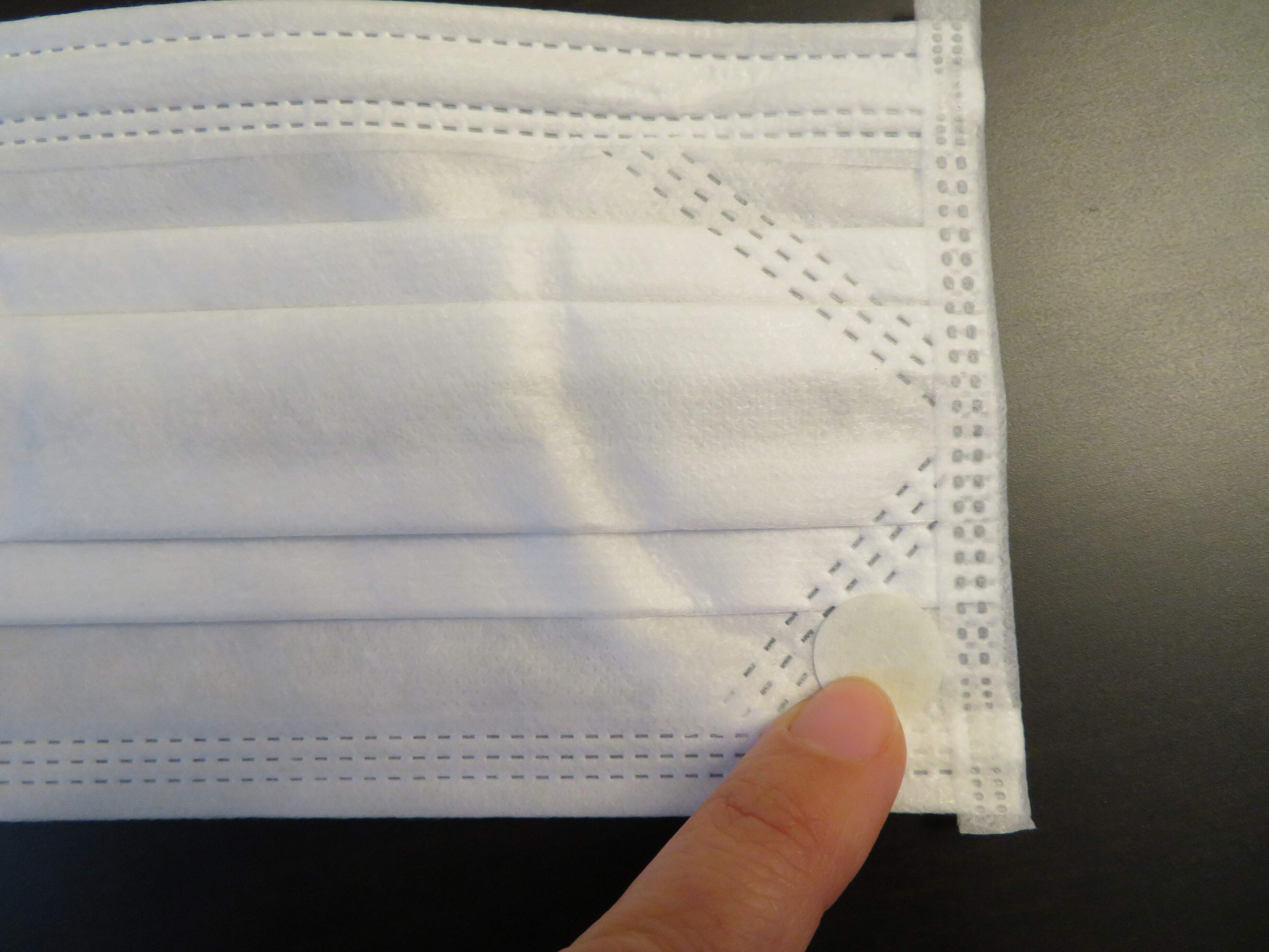 しみこんだら、シールをシートからはがしてマスク外側の下の方に貼るだけ。
