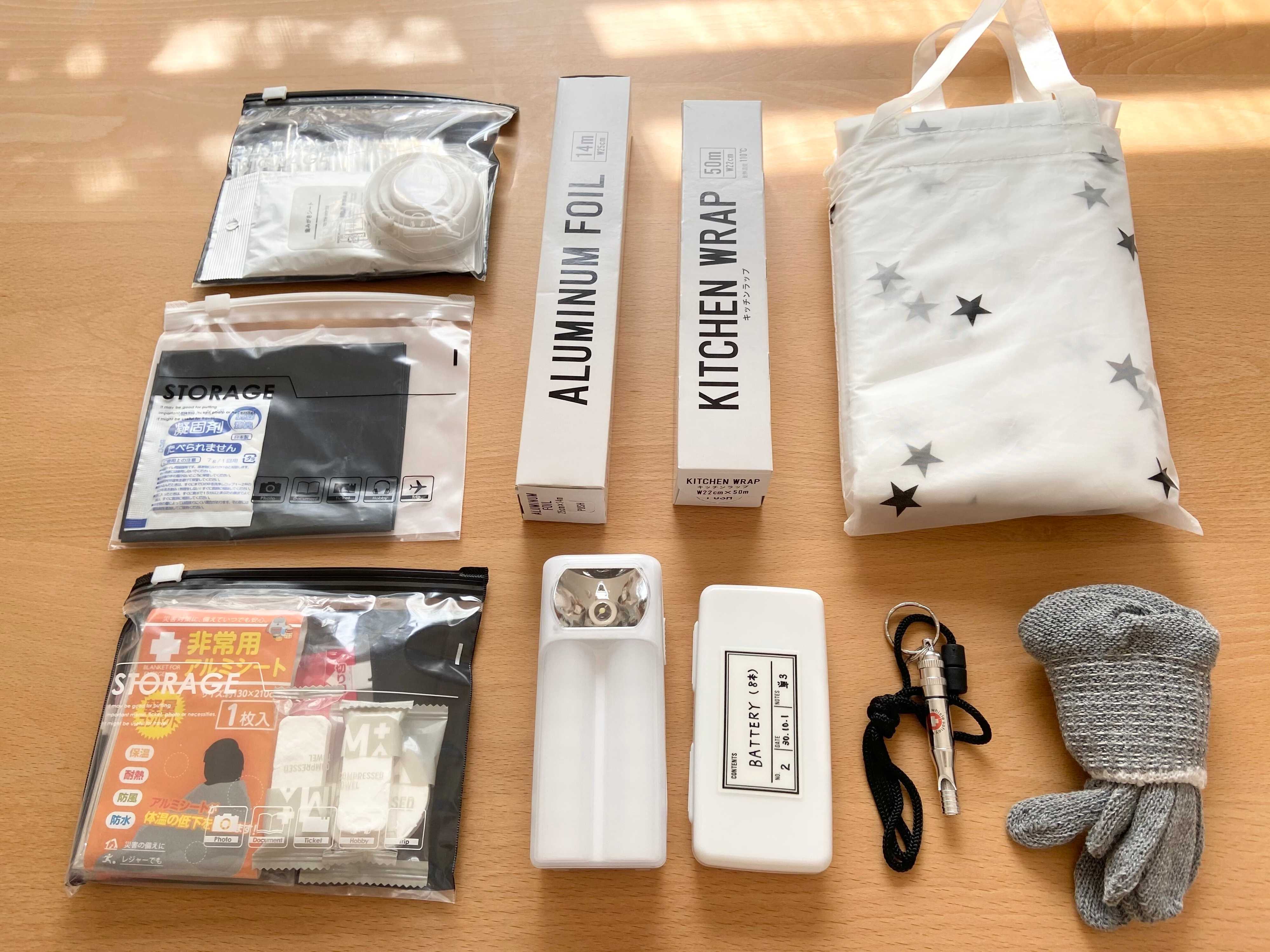 実際揃え始めて100円ショップで揃えて良かったと思っているのは、防災セットは基本大人仕様で作られていますが、子供用の防災セットはその年齢に応じて中身が異なってくるので、カスタムしやすい点。そして、自分が必要と思うものだけを揃えていける点です。