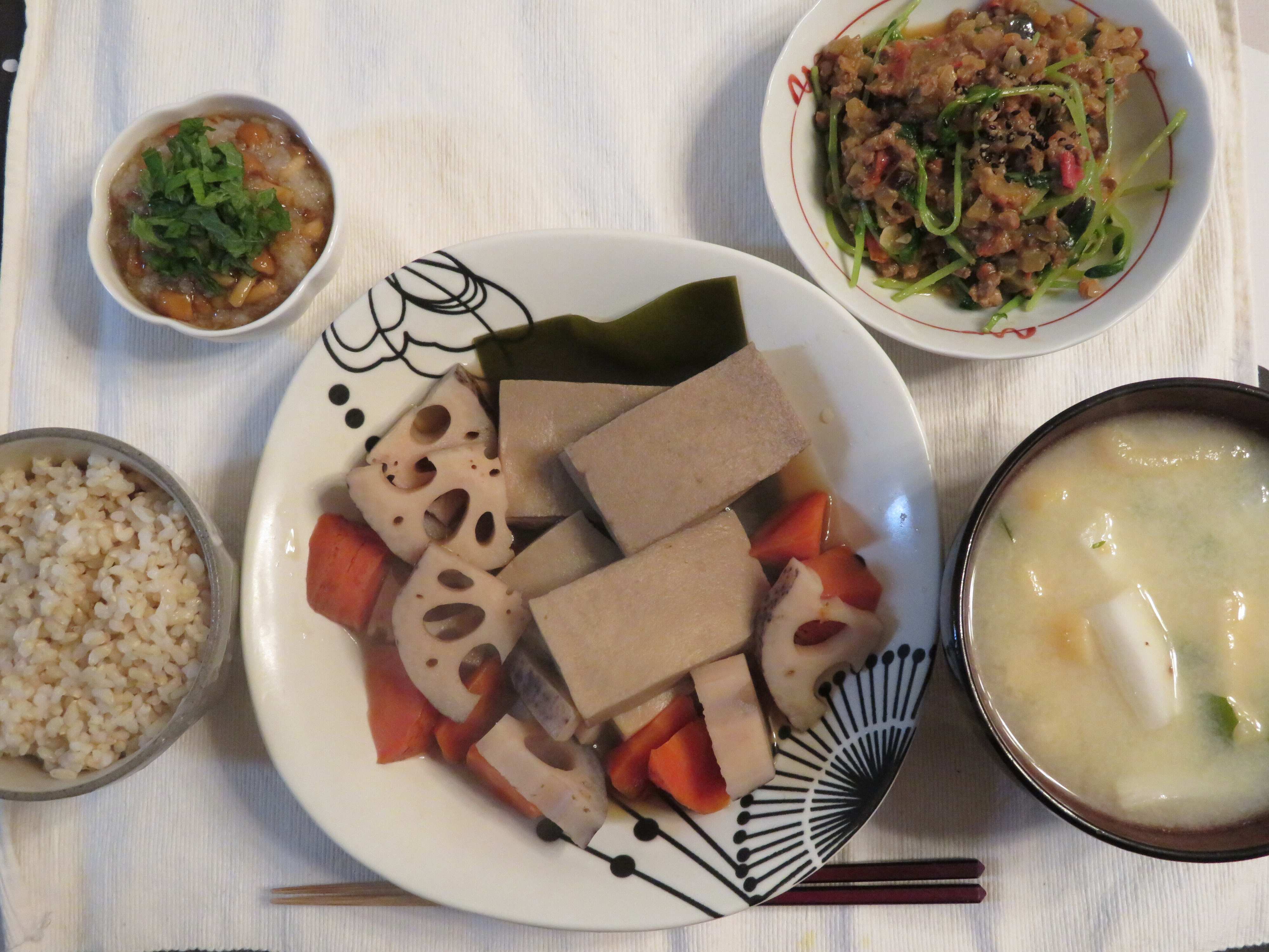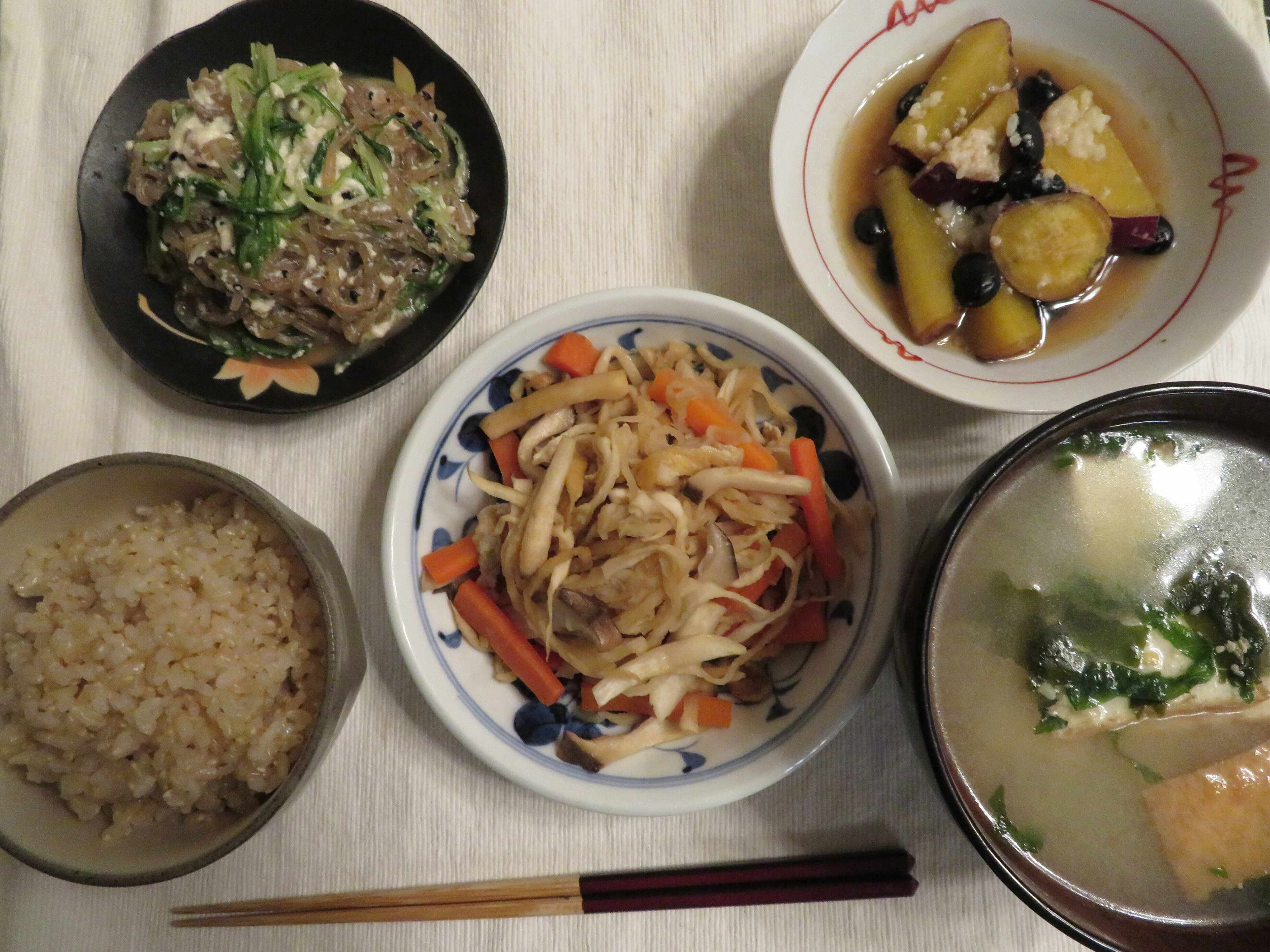 切干大根、油揚げ、ニンジン、エリンギの炒め物