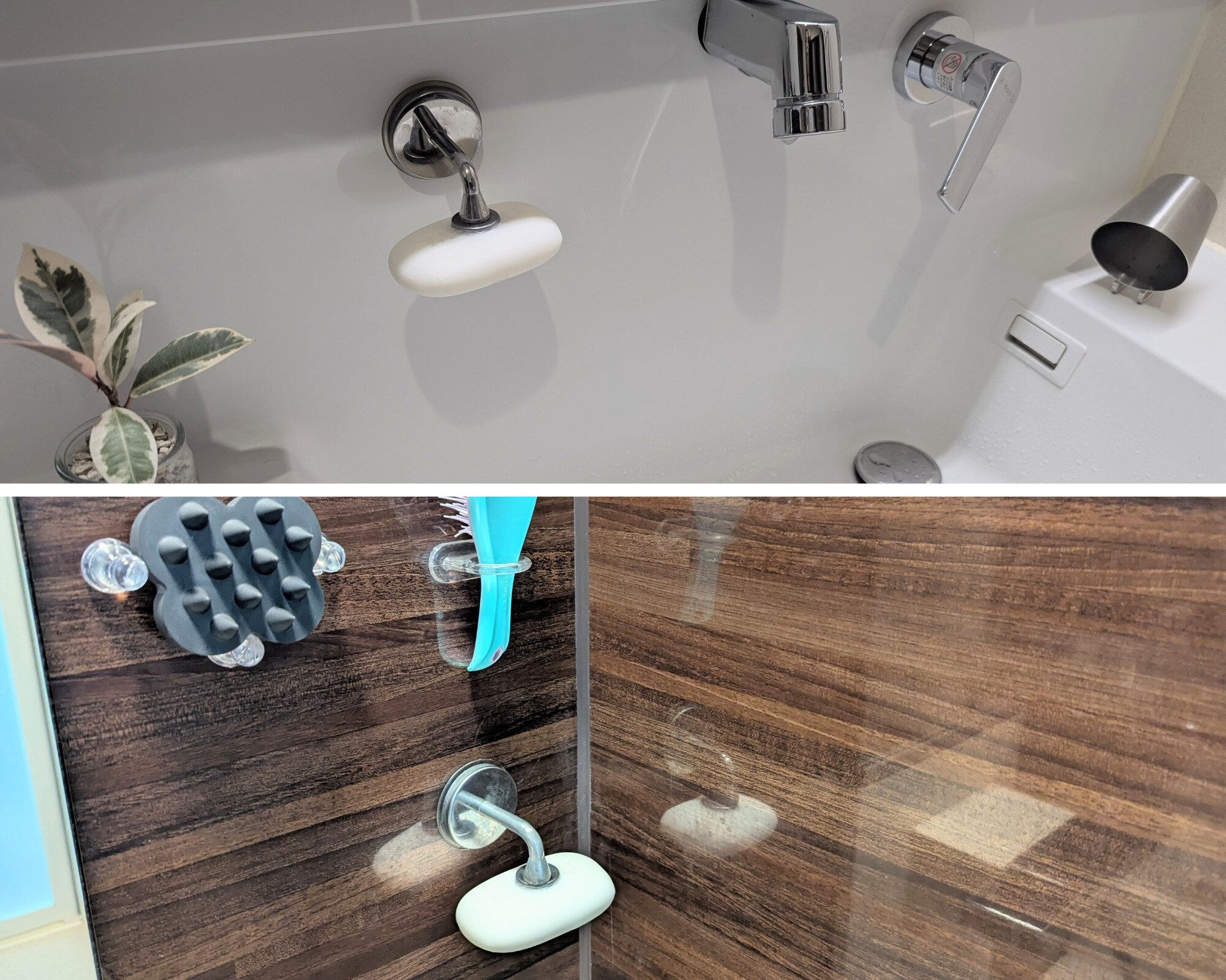 (上)洗面所 (下)バスルーム:どちらも浮かせて保管しています