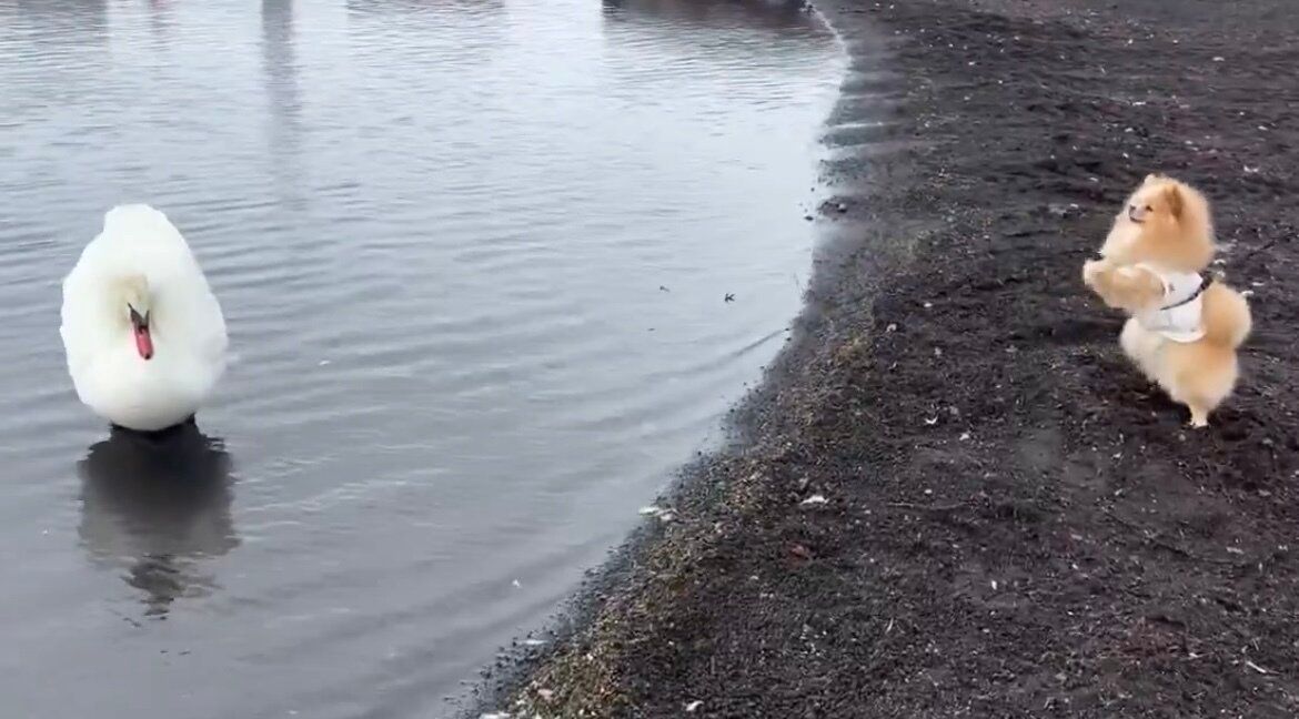 「ピカルディが白鳥を見るのは初めてだったので、あまりの喜びぶりに驚きました。反対に、白鳥は全くの無反応だったのがちょっとシュールでした」