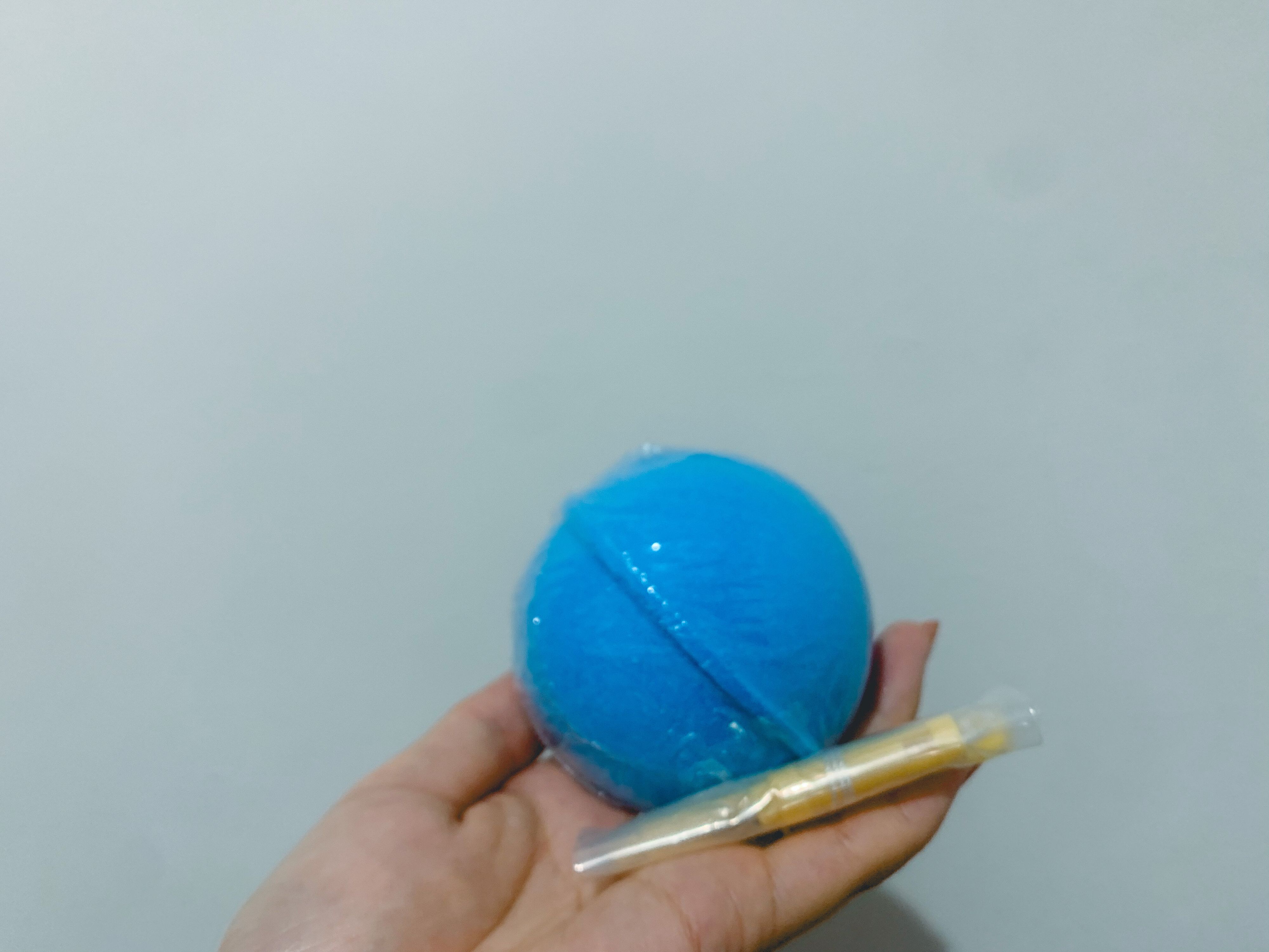 バスボムがめちゃくちゃでかい。なんと直径75mm!!香りはシャボンの爽やかな香り♪付属の釣り竿は上下を接続してつかいます