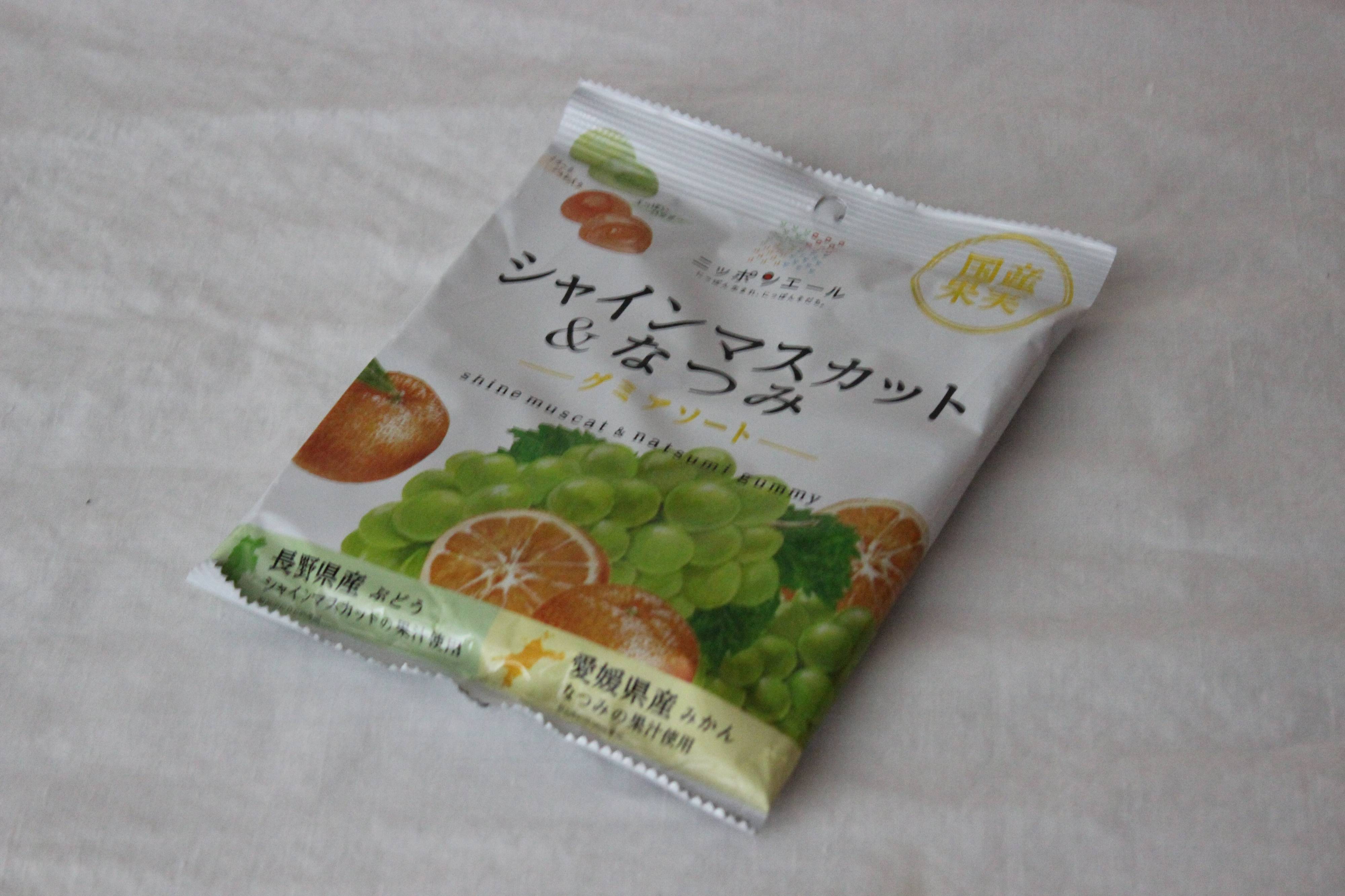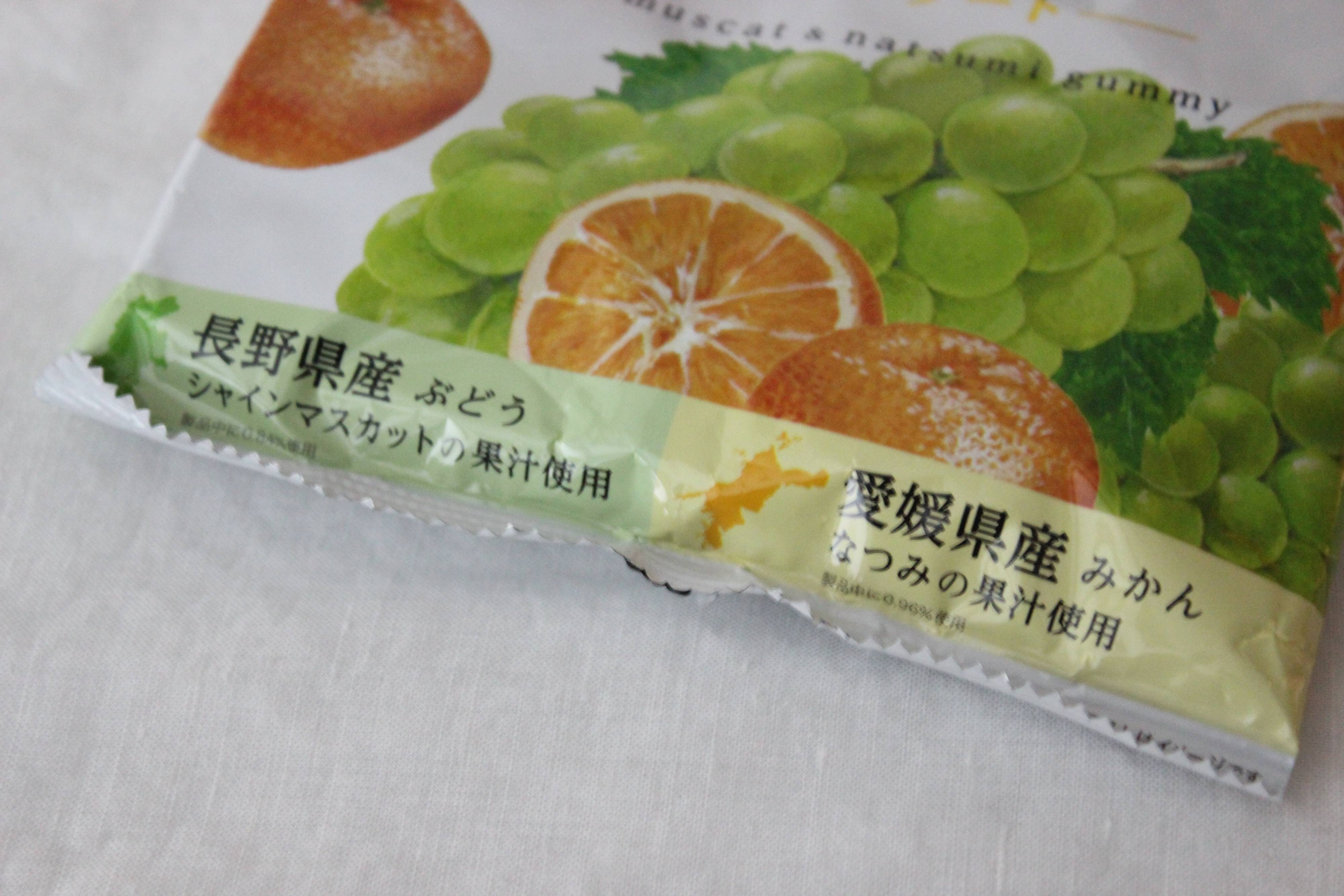 長野県産シャインマスカットと愛媛県産なつみという希少価値の高い果物がグミになって入っています。