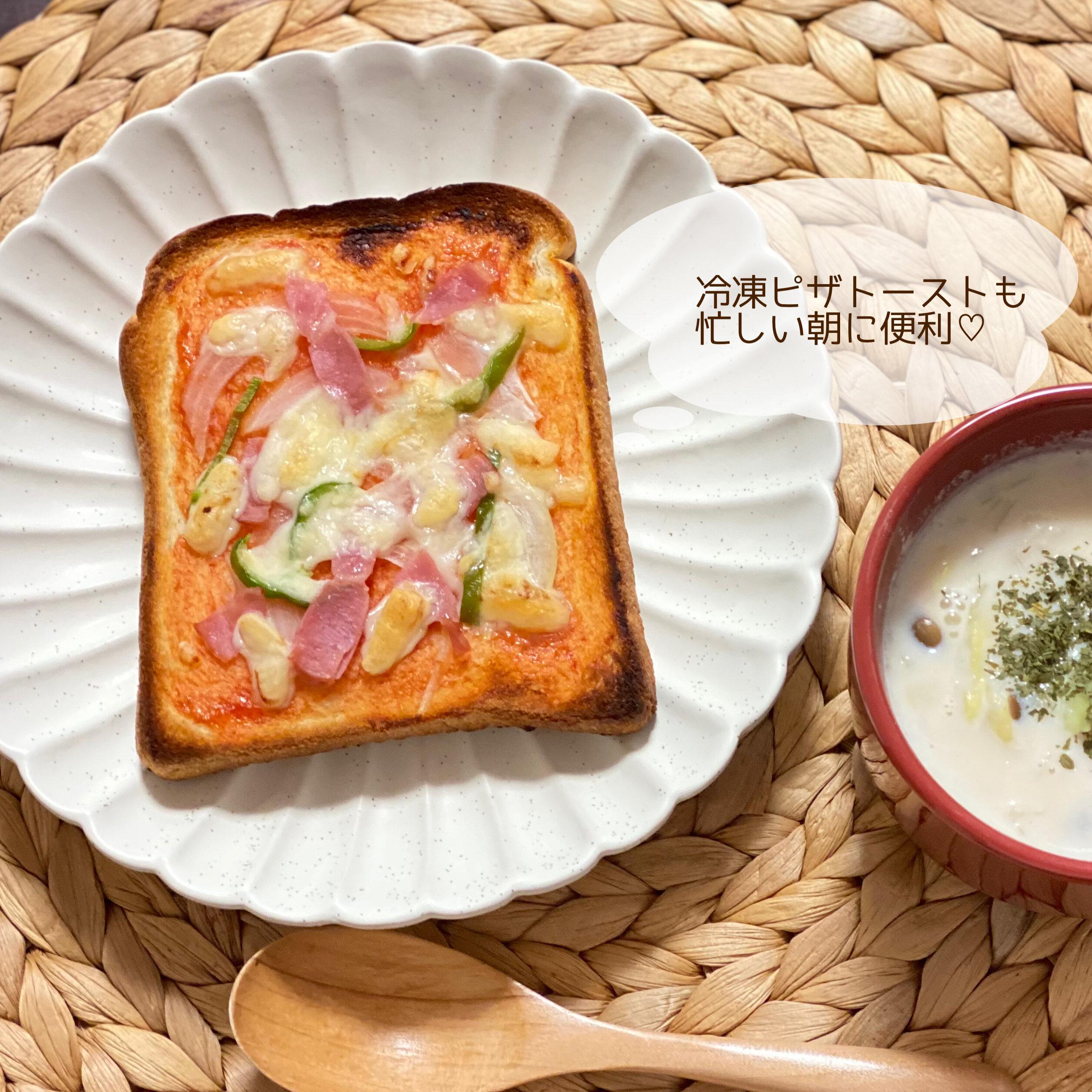 パンの日は、ジャムやヨーグルトを添えています。ピザトーストを冷凍ストックしておくのもオススメ!おやつやお昼ご飯にも使えるので、食パンが安い時にまとめてストックしています。