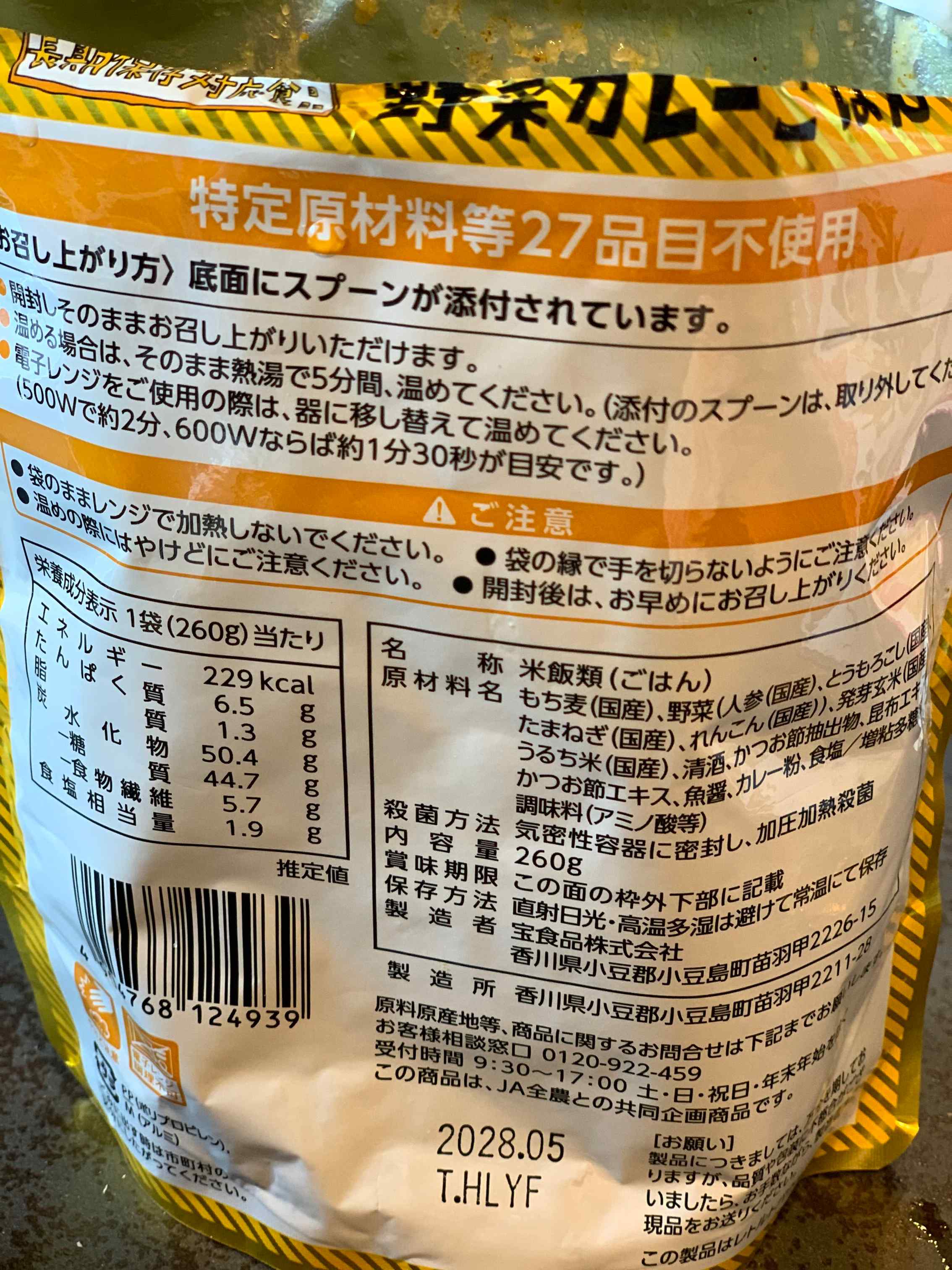 このかわいらしいポップなパッケージの商品が、「全農オリジナル防災食」。