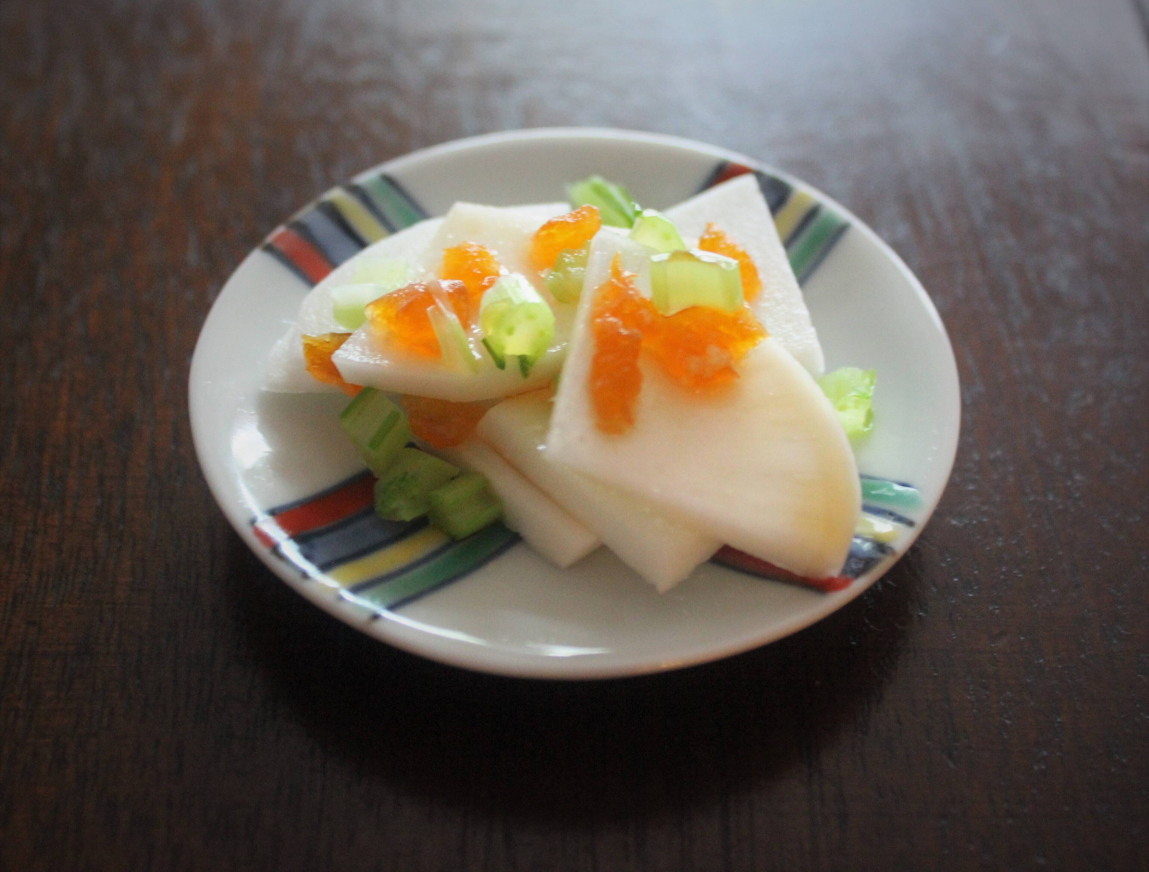 かぶの浅漬け。ドライフルーツの梅を使えばすぐに甘酢に!