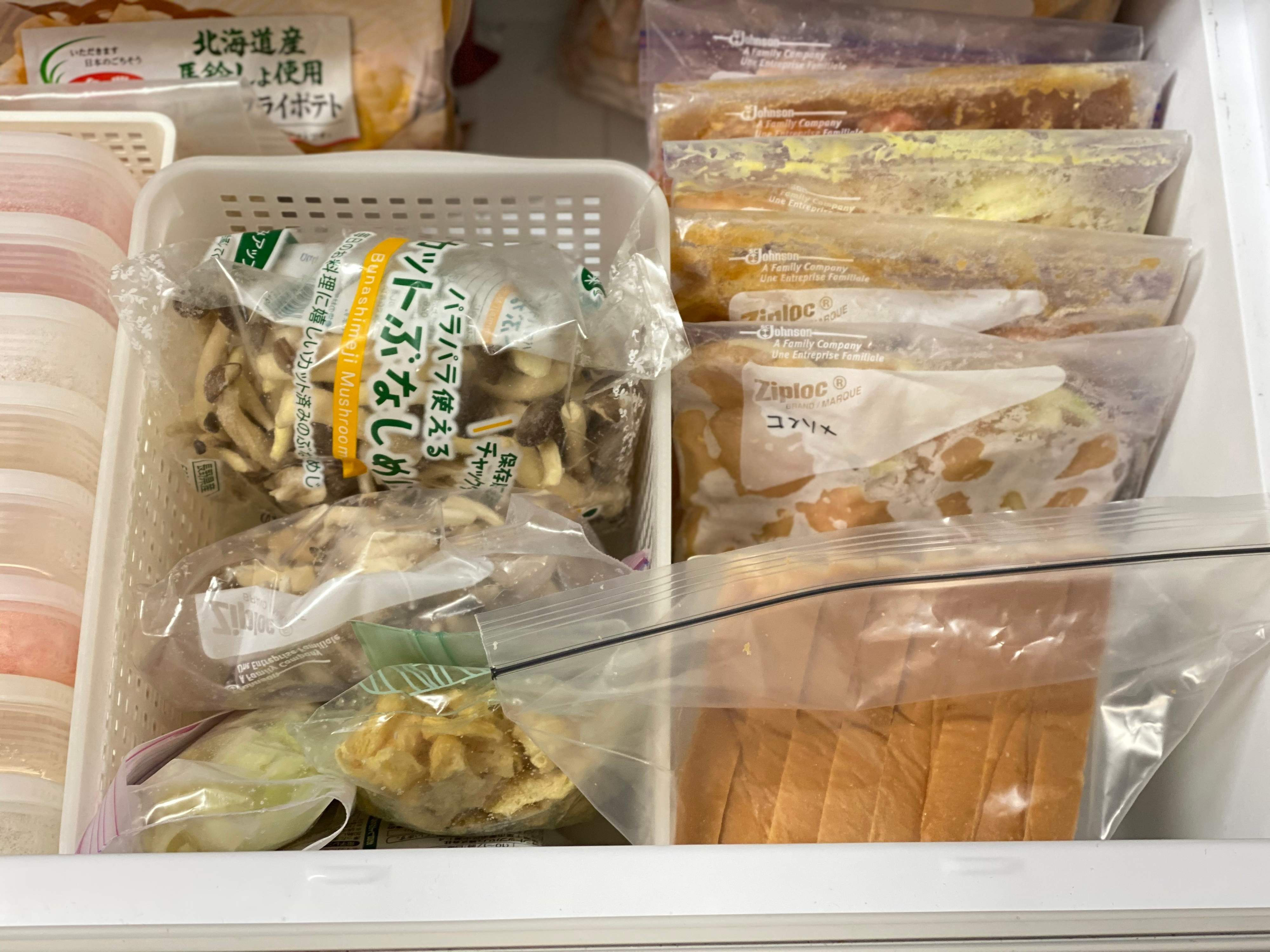 例えば、保存方法を工夫して長持ちさせたり、予め献立を考えて、無駄なく買い物したりすることで食品ロスは減らすことができます。わが家では、冷凍保存することで廃棄食材を減らしています。