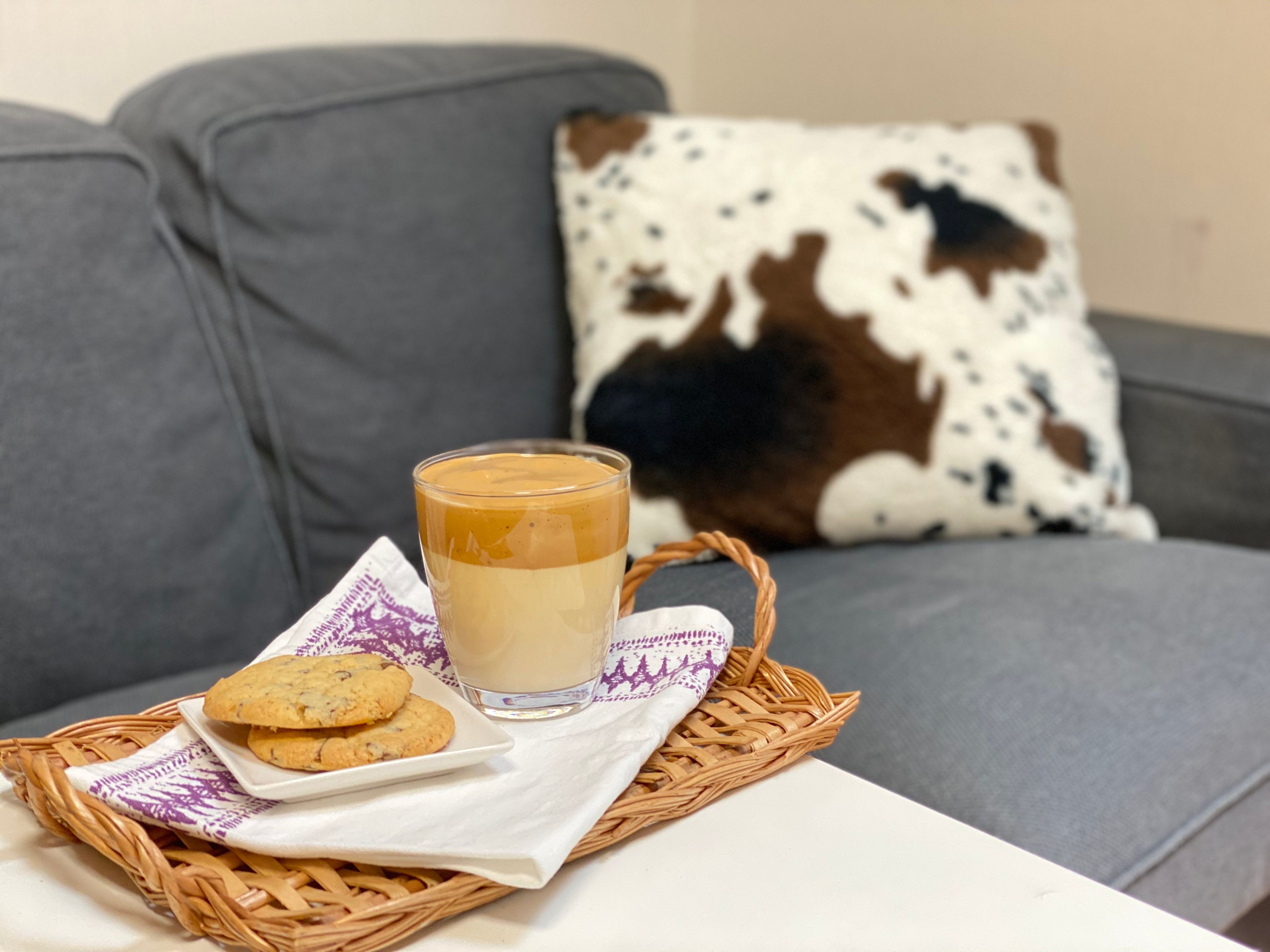例えば、牛乳をつかう料理や飲みものを増やしてみる。リビングにお花を置いてみる。おうち時間の贅沢としてスーパーで和牛を購入してみる(過去5年で最安値となっているそう)など、私たちでもできることはたくさんあります。私は、牛乳たっぷりのカフェラテでおうちカフェを楽しんでいます。