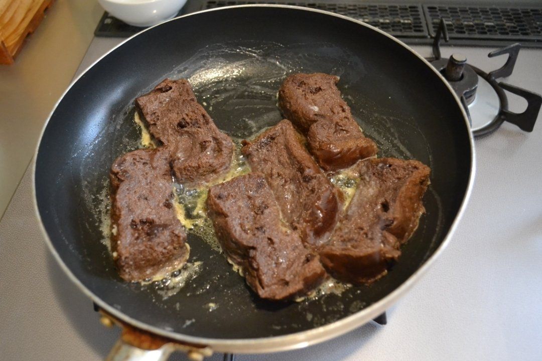 ちょうどチョコのパンがあったので、フレンチトーストにしたら美味しいかな~?っと思い作ってみました。