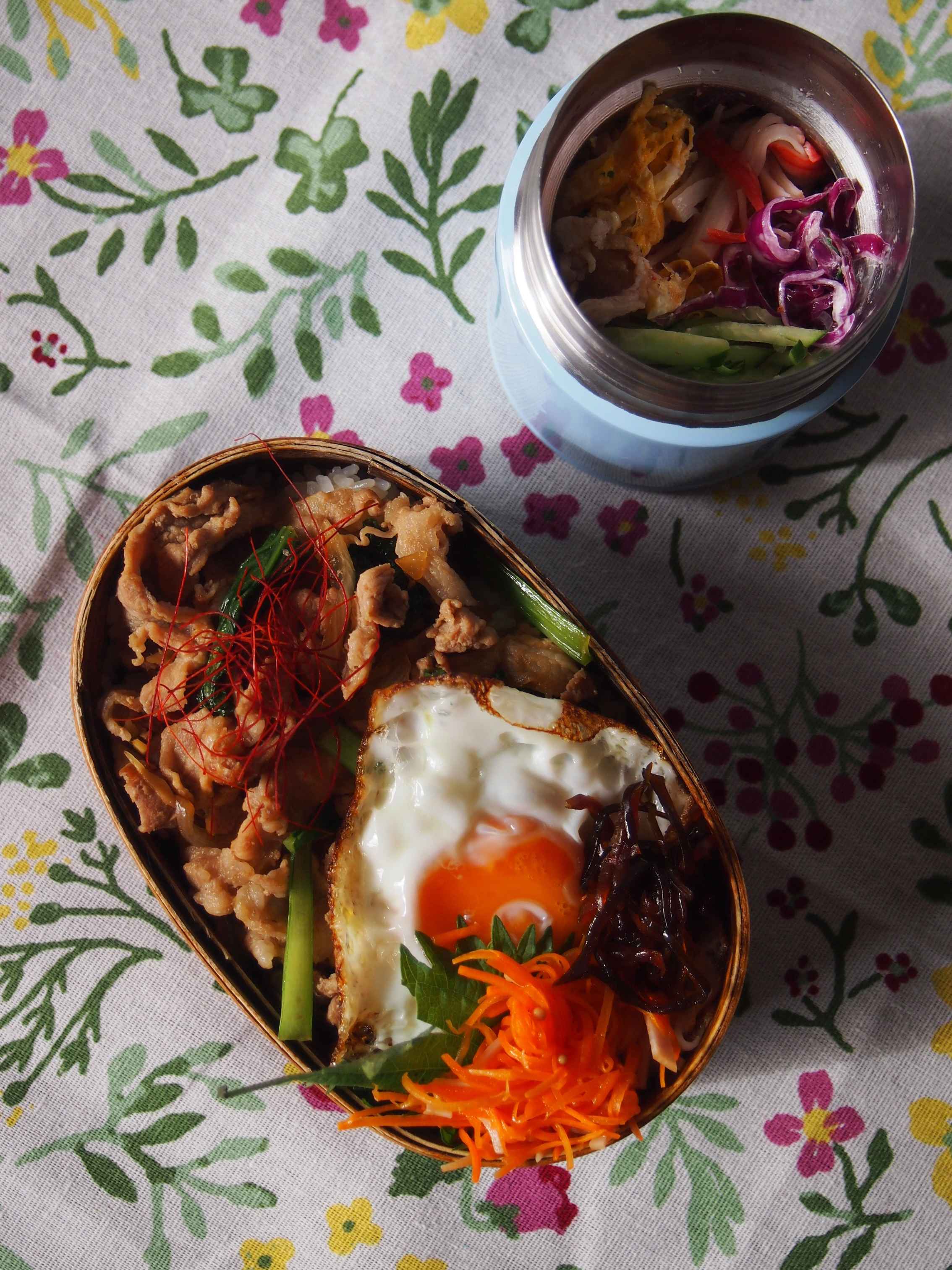 お弁当以外じゃ足りないので肉弁当with冷やし中華。