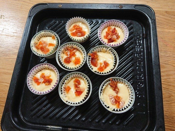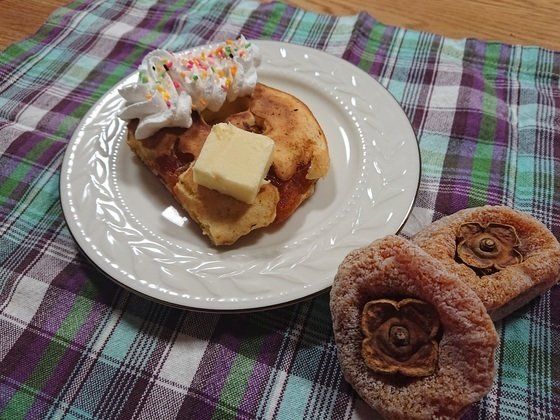 柔らかめの生地に粗く刻んだ干し柿を入れて焼きました(娘が)
