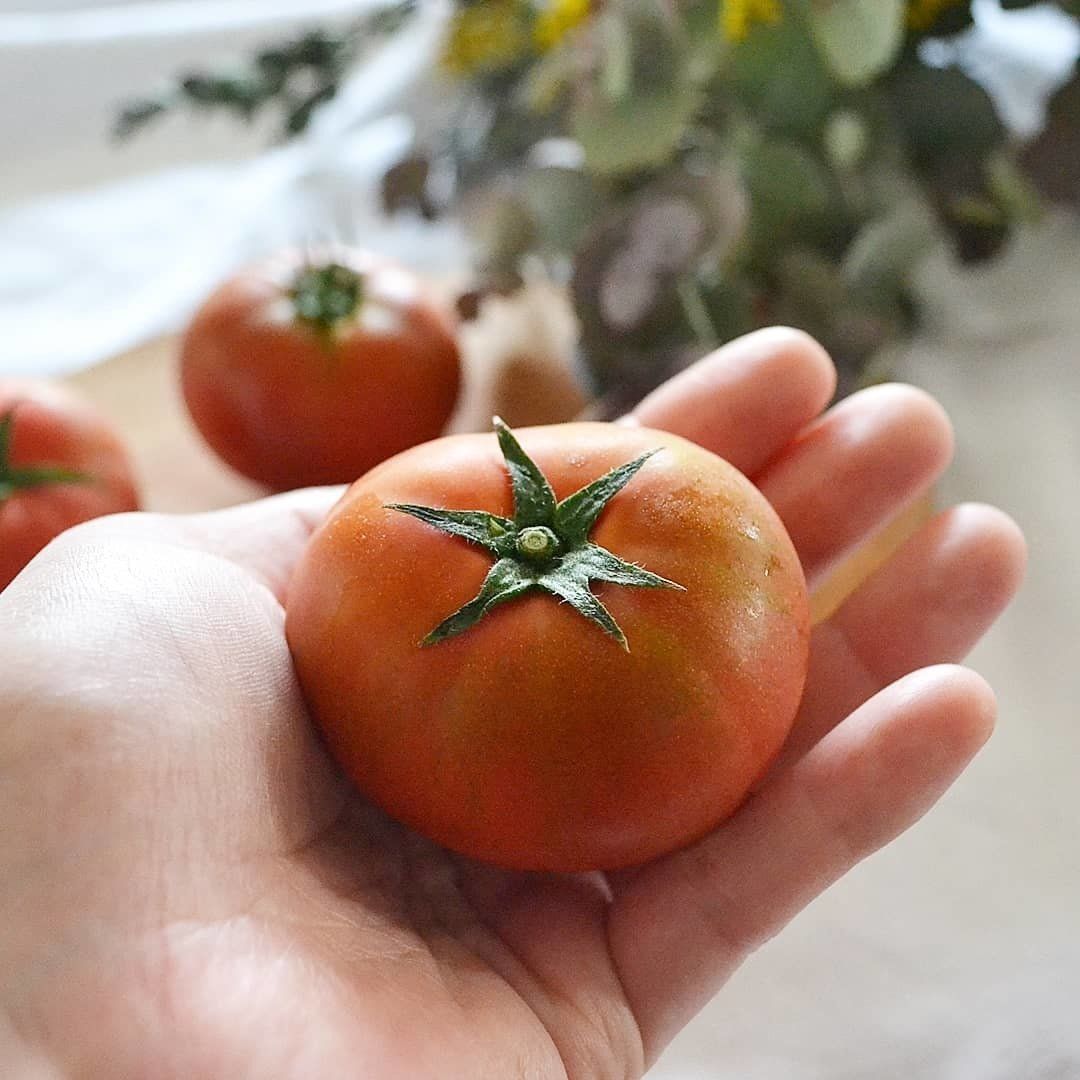 美味しいトマトの見分け方は、お尻の筋から放射線状の筋が見える物は糖度が上がっている傾向だそうですよ!!