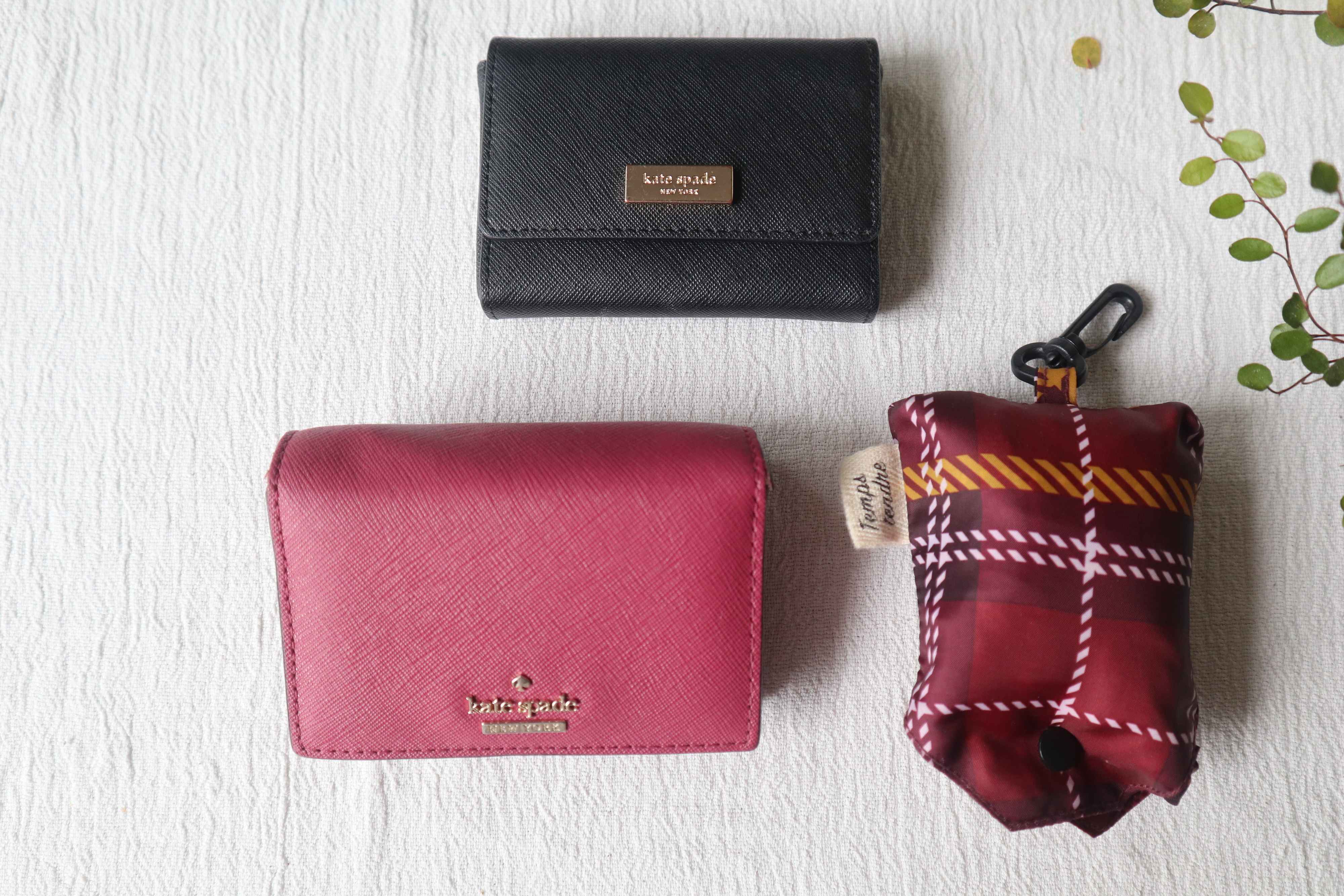 左下)ミニウォレット(ケイトスペード)バッグに小型化のためデイリー持ちはミニウェレットに変えました。なんとこれパスケースや鍵もつけられる多機能ウォレットです。私すぐ物なくすからあれこれ分けて持つと危険。1つにまとめておいた方がなくさなくて安心。