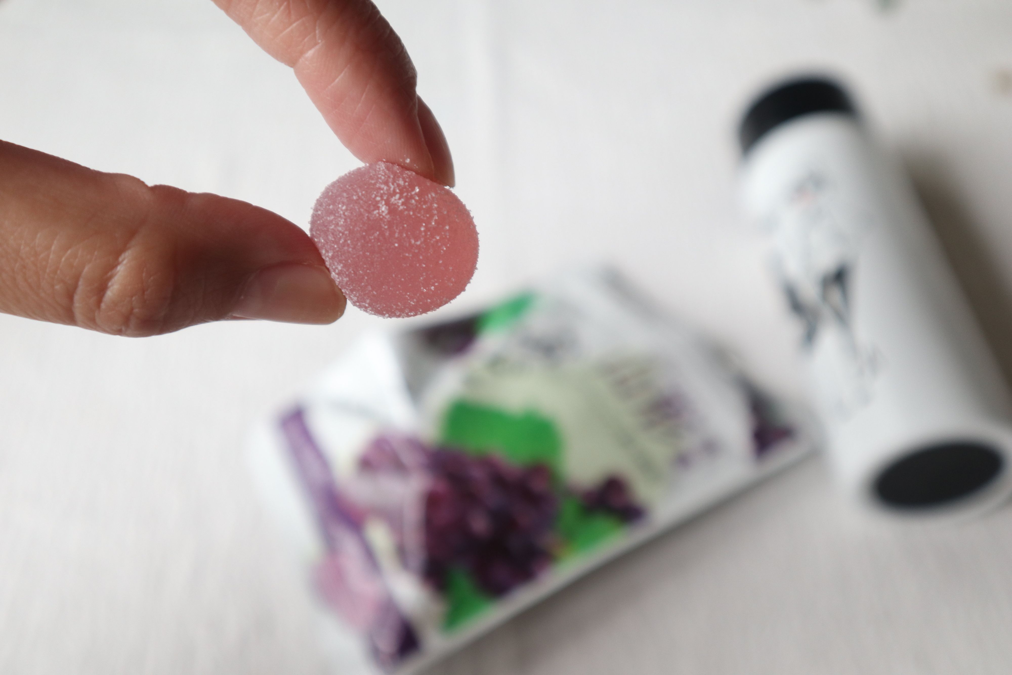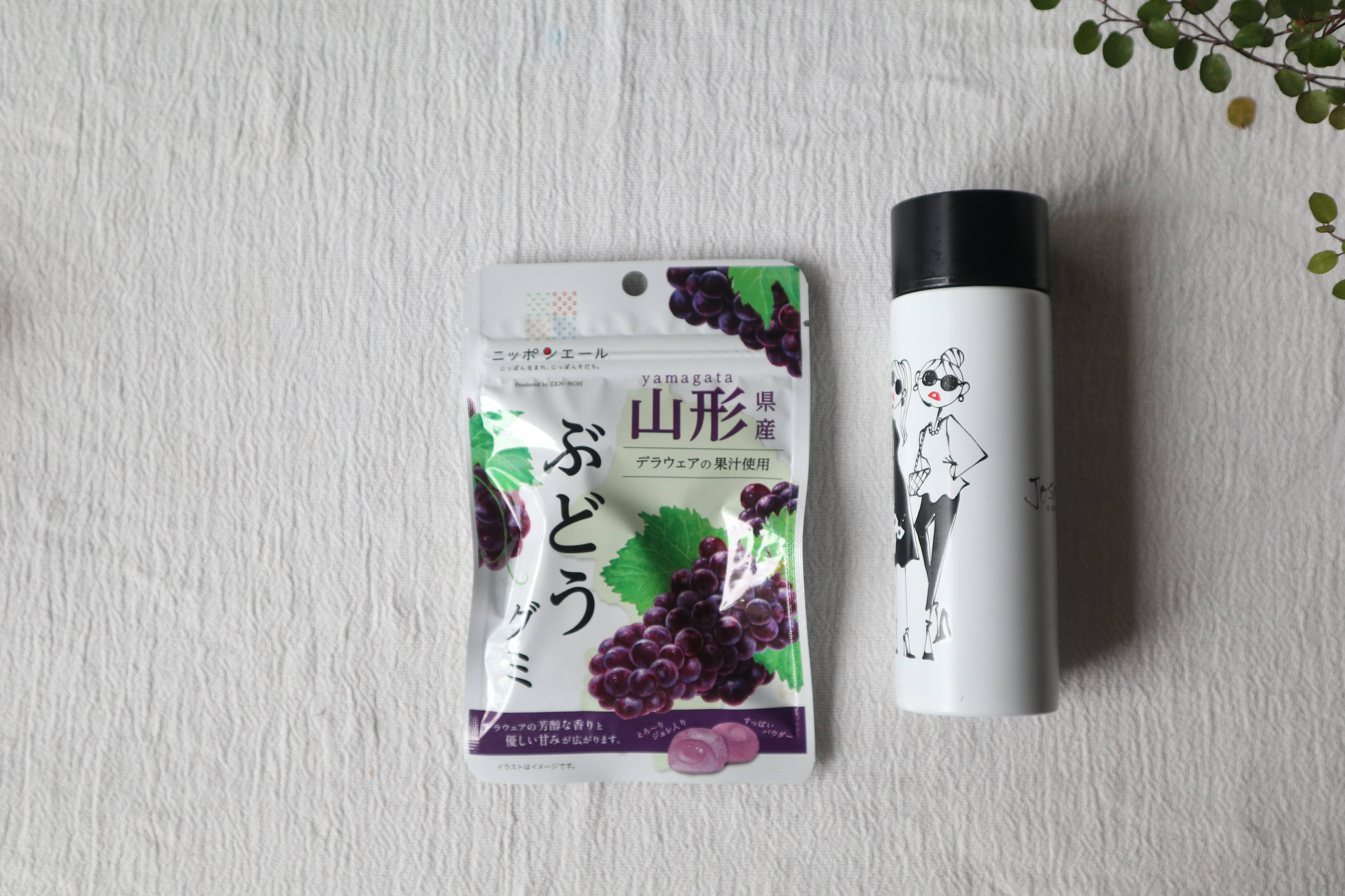 右)プチおやつ(ぶどうグミ)ホッとひと息用に。バッグに入っていると嬉しい。後小腹減った時や甘いのを欲したときにもよい。