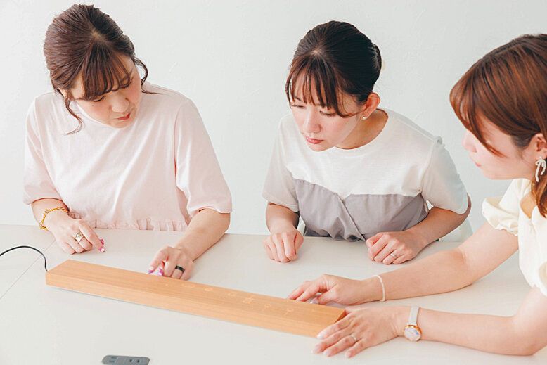 編集部「こちらは『m u iボード』というスマートホームコントローラー。スマート家電を操作したり、ここに文字を手書きして、スマホにメッセージを送ったりできます」