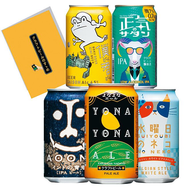 5種類のクラフトビールを飲み比べできるセット。初めての人でも、もっとクラフトビールを楽しめる入門書「クラフトビールのすゝめ」付き。¥1,980(送料無料)/ヤッホーブルーイング☎ ︎0120・28・4747
