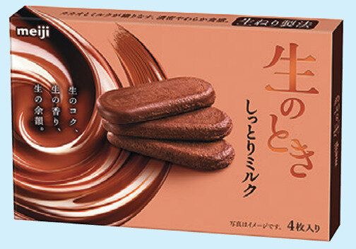 カカオとミルクを丁寧に練り合わせて作った、しっとり柔らかで濃密な味わいのお菓子。程よい甘さ。(4枚)オープン価格/明治☎︎0120・041・082 ※10/7~関東甲信越・中部・関西限定販売