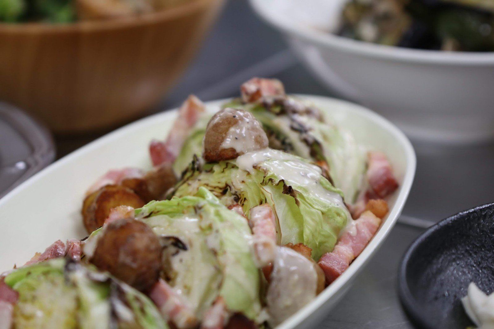 これは、オーブン焼きで、おっきなキャベツがドドーン!と出てきました!こうして出すと、キャベツが一気にメインディッシュ!すっごくごちそう感が出て、おしゃれ!バルの一品みたい!しかもおいしい!