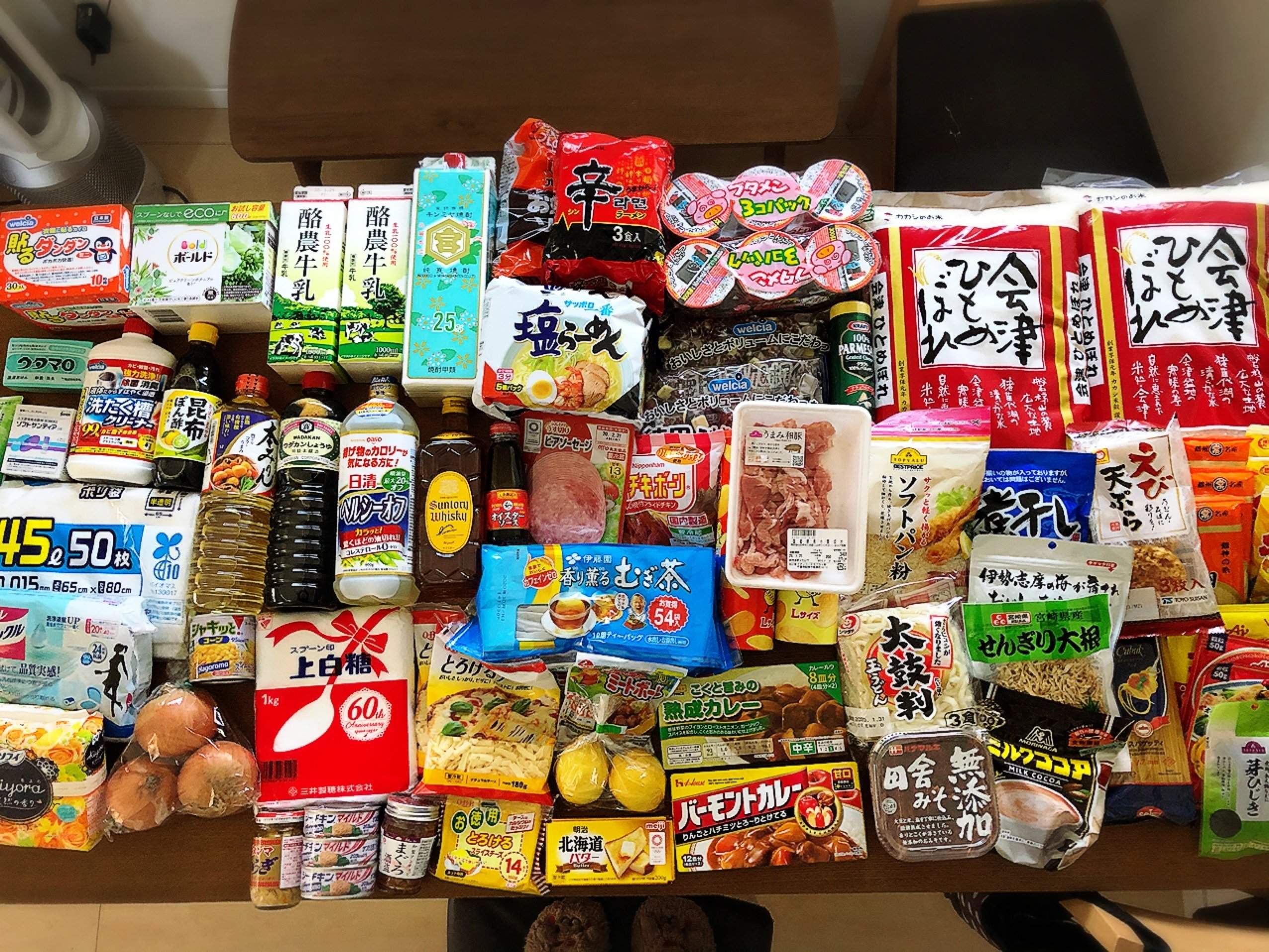 ひーこらいいながら持って帰ってくるのですが、これだけ買ってもTポイントで支払えるので支払った金額は0円。