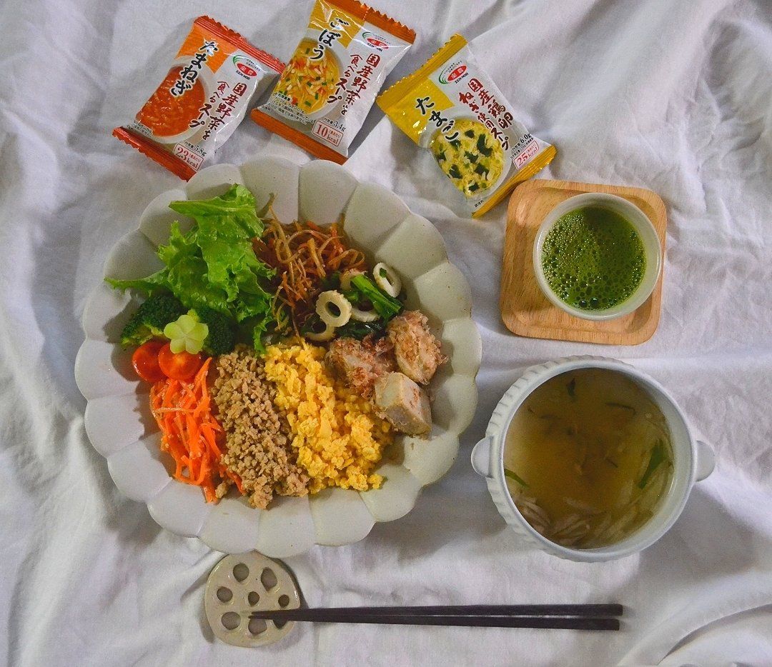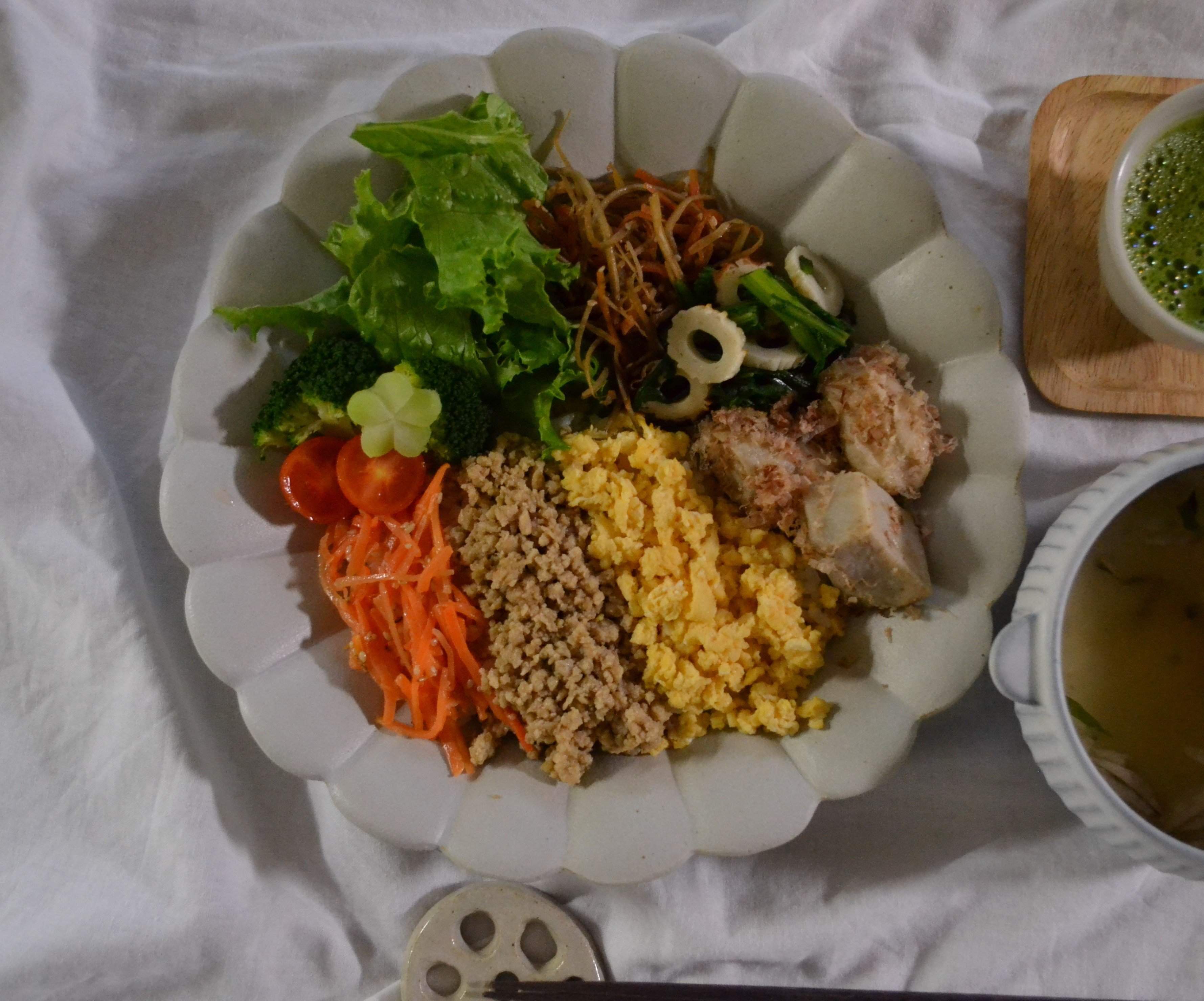 そぼろ丼で和ンプレートな朝ごはんを作りました!!