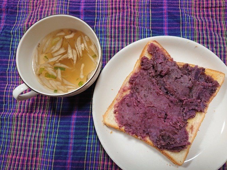 自家製の紫いもあんを塗ったパンと一緒にいただきました。