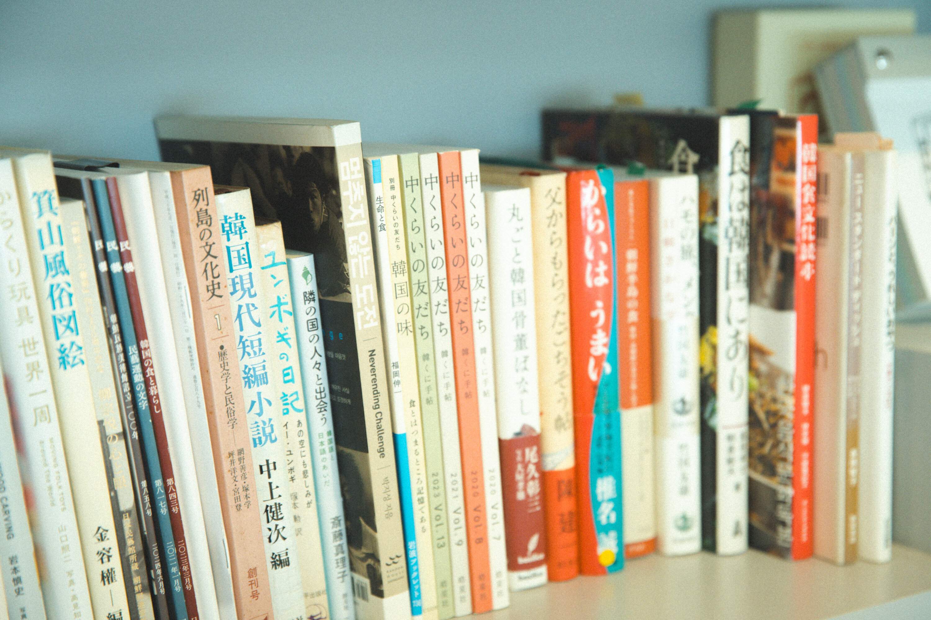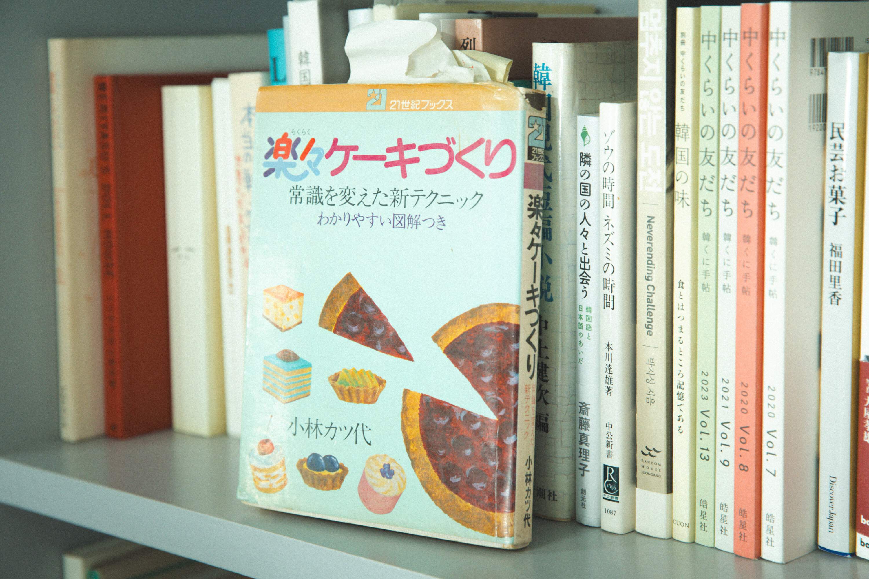 「韓国の食文化の本が増えたのは、日本人の自分が、韓国の料理をつくるためには、きちんと背景を知っておくべきと考えたから」。真摯に韓国料理と向き合っている山口さんの姿勢が伝わる本棚でもあります。