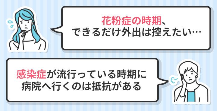 忙しくて病院に行く時間がない! 子連れで病院に行くと流行中の感染症をうつされそうで心配! 花粉症の時期はなるべく外出は避けたい・・・など、病院に行くのがためらわれるときってありますよね? そんなときに、ネットやスマホを使うだけで、受診から処方薬の受け取りまで出かけずにすませられるサービスがあるんです。
